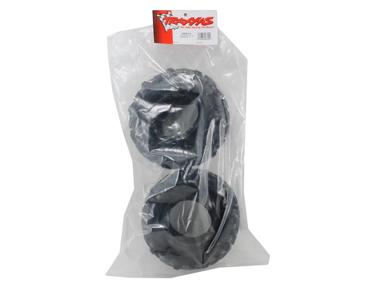 This is a set of two Traxxas 3.8″ Canyon tires with foam inserts. These are the tires that come stock with the Traxxas Summit Monster Truck.