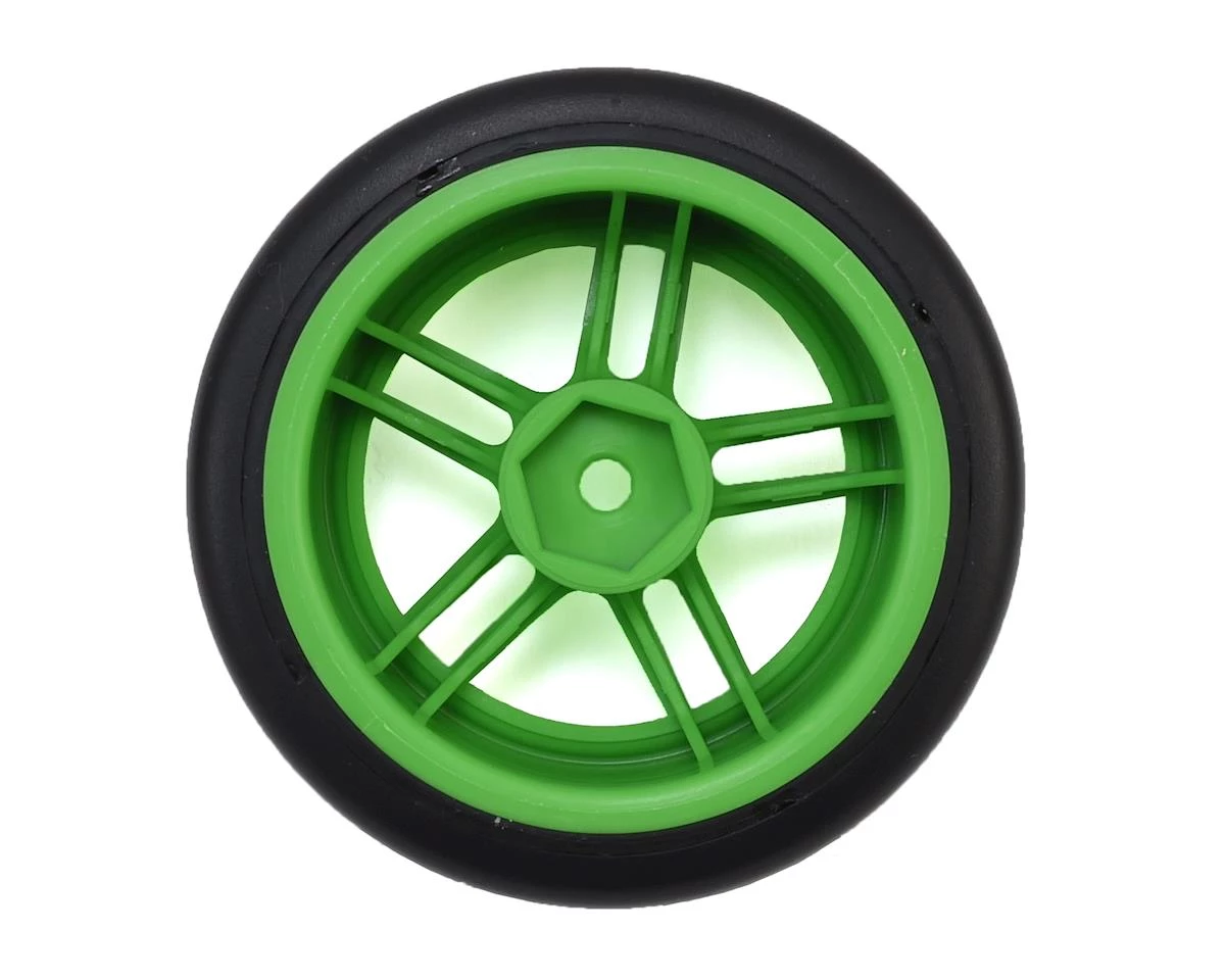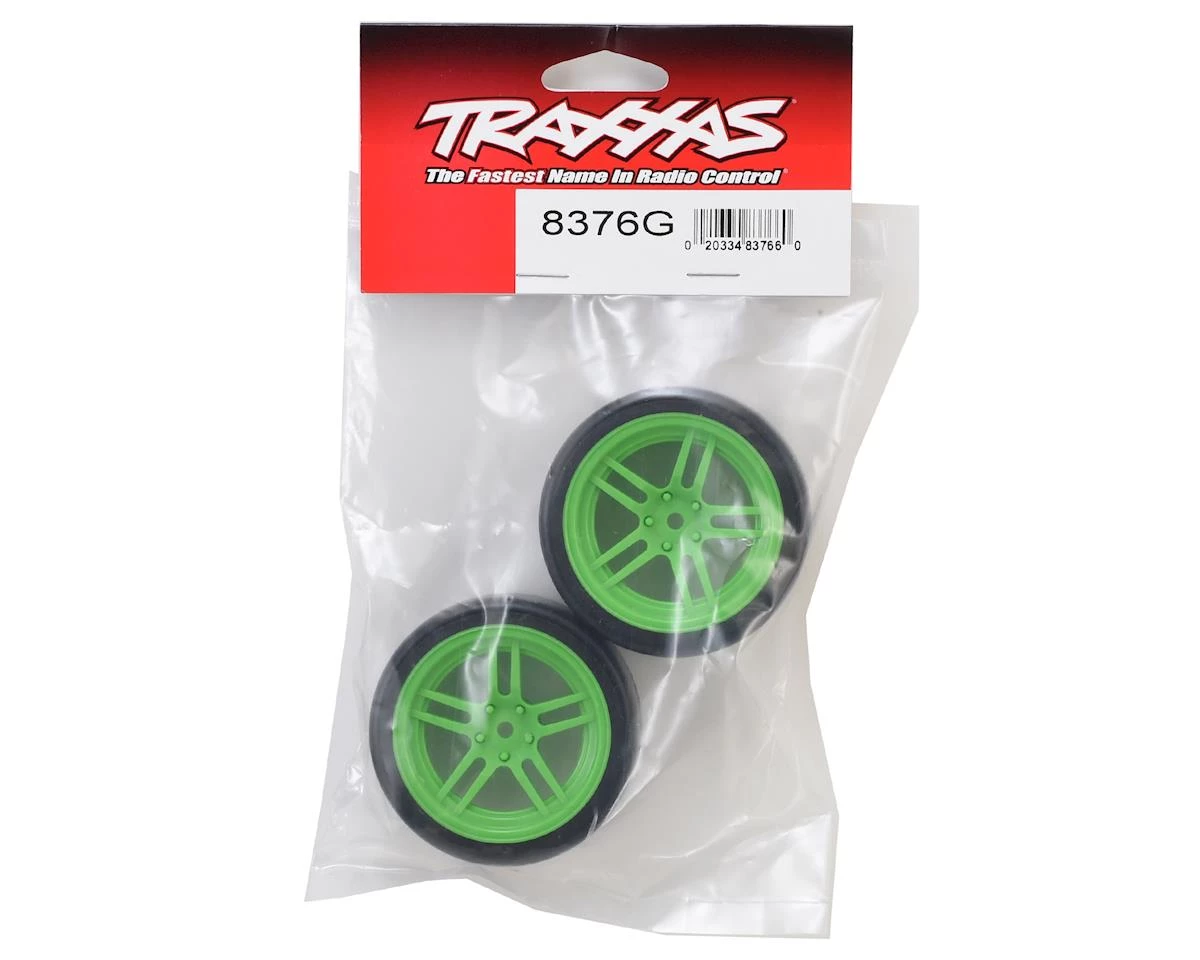 This is a pack of two optional Traxxas 4-Tec 2.0 1.9″ Front Pre-Assembled Drift Tires, mounted on Green wheels. These tires are completely assembled and glued to the wheel; just install and go!