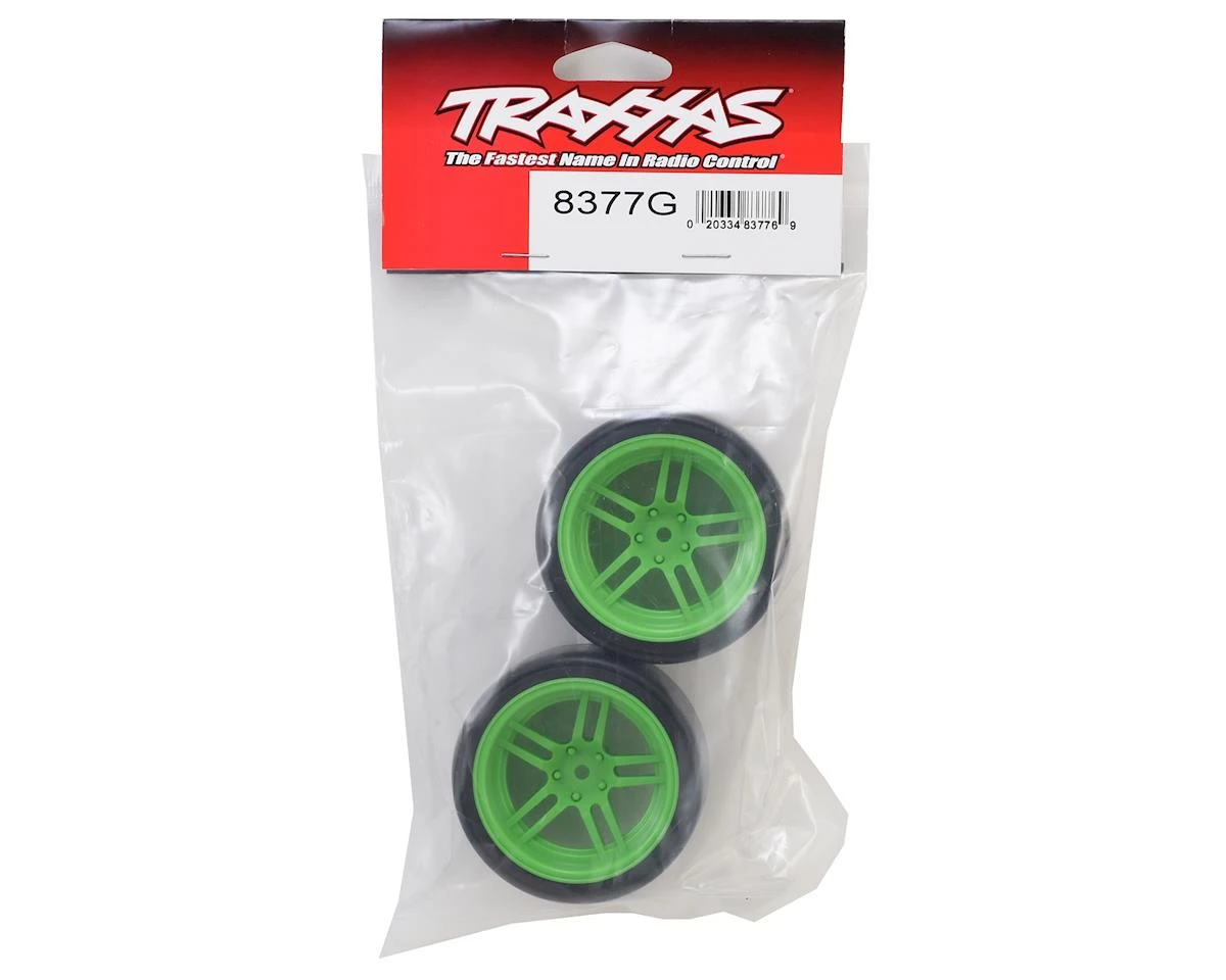 This is a pack of two optional Traxxas 4-Tec 2.0 1.9″ Rear Pre-Assembled Drift Tires, mounted on Green wheels. These tires are completely assembled and glued to the wheel; just install and go!