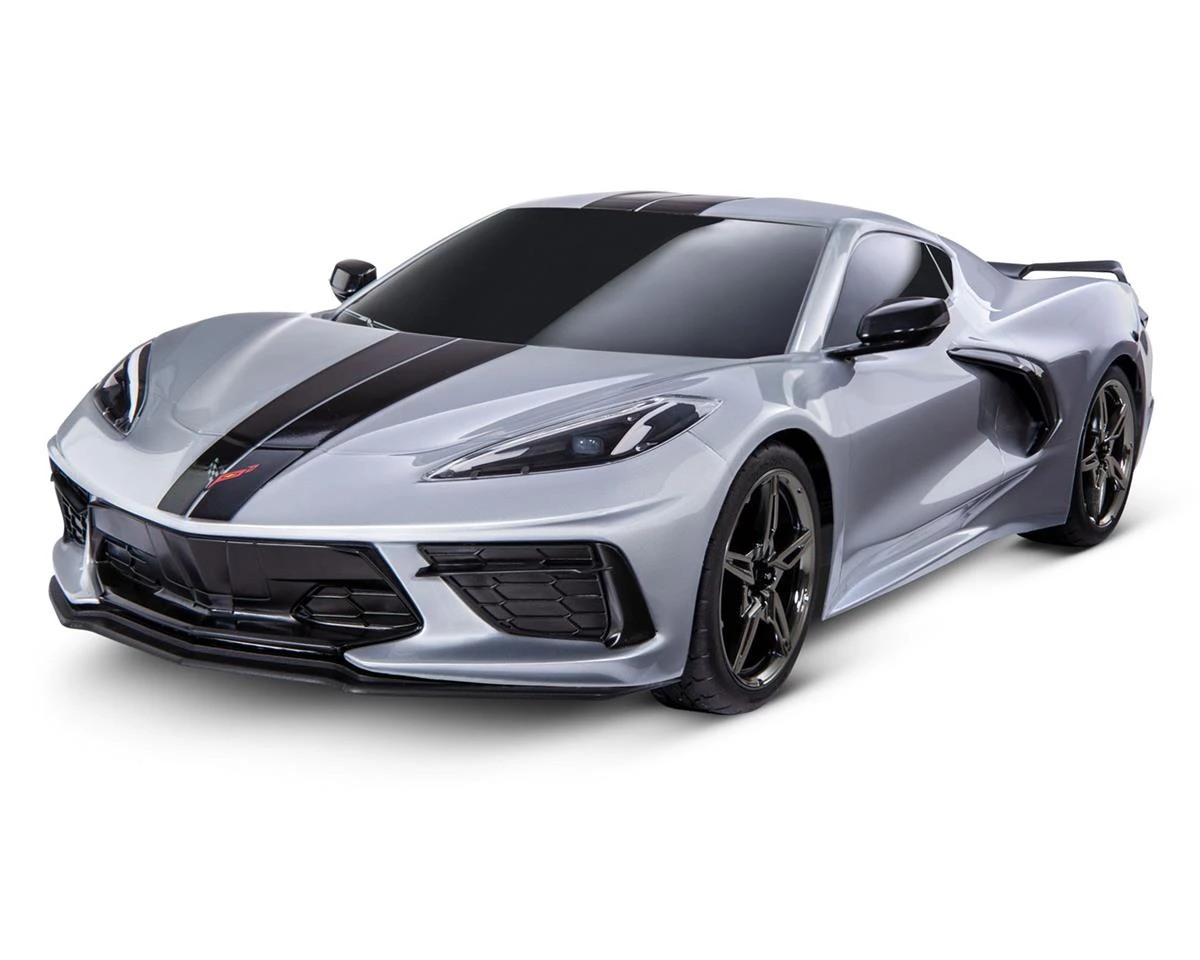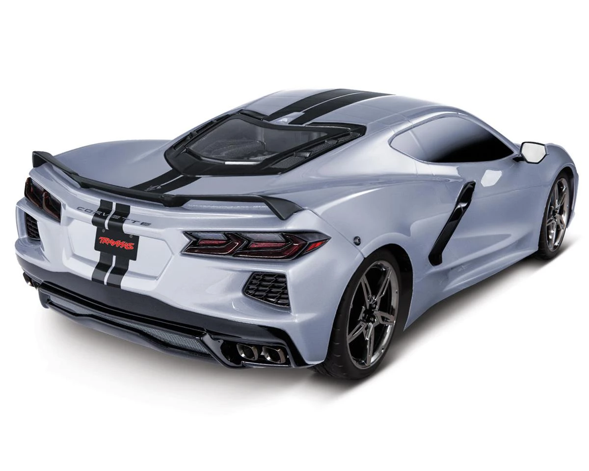 The Traxxas 4-Tec 3.0 1/10 RTR Touring Car delivers the spirit and excitement of the mid-engine Corvette in exacting scale detail on the larger 4-Tec 3.0 chassis. The Traxxas 4-Tec 3.0 puts supercar performance in your hands with a long-wheelbase, wide-track design. The faceted, Corvette Stingray body and its massive side intakes are duplicated to the millimeter. The simulated LT2 V8 is visible beneath the rear hatch. Authentic black-chrome wheels fill the fenders. A name synonymous with American sports car excellence, combined with Traxxas performance that demands you to drive.
