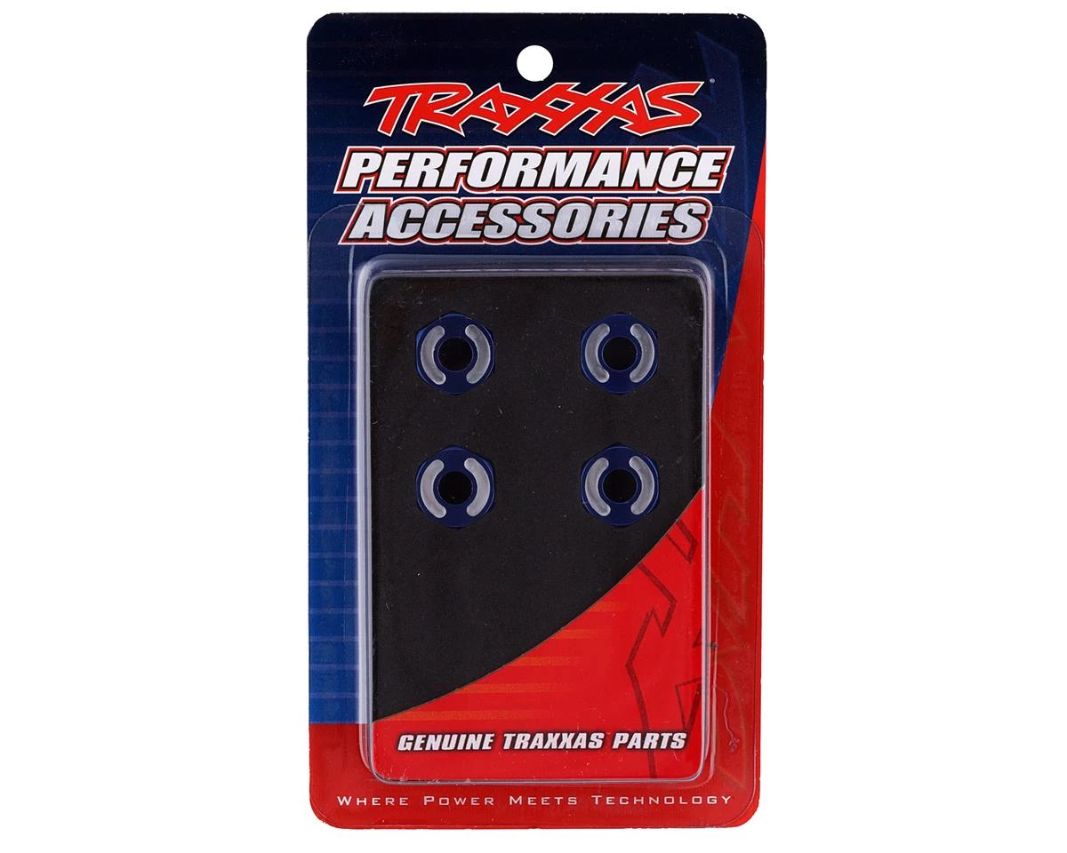 This is a pack of 4 option blue anodized aluminum hex hubs for Traxxas vehicles such as the Traxxas Revo. Also included are four 2.5x12mm axle pins.