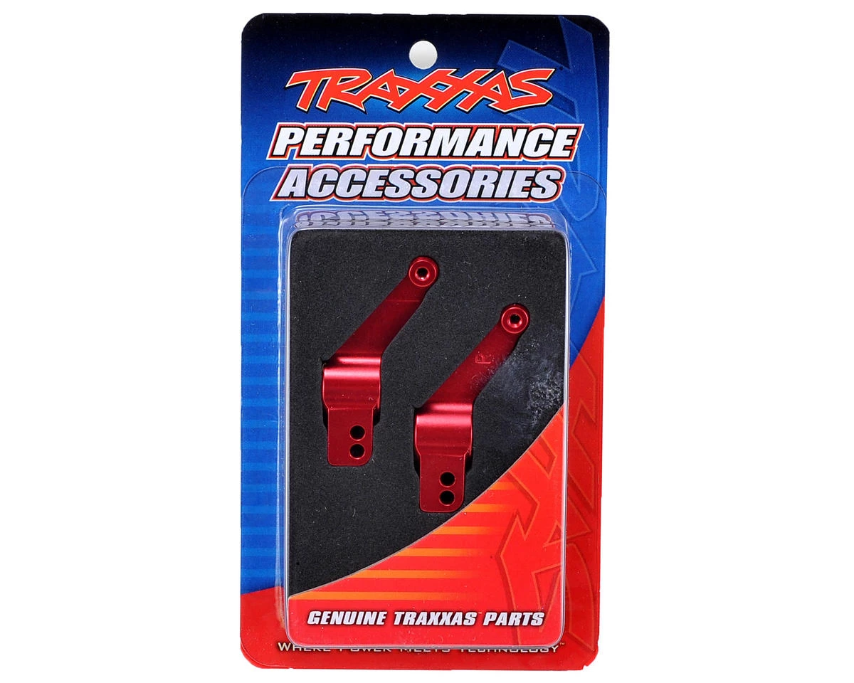 This is a set of two optional Traxxas Rear Stub Axle Carriers, and are intended for use with the Traxxas Slash 4×4, Nitro Rustler, Nitro Stampede and Nitro Sport. These will not only add strength to the rear suspension of your Traxxas Truck, these high quality CNC machined 6061-T6 aluminum axle carriers will help to give your ride a “Pro” Truck look.
