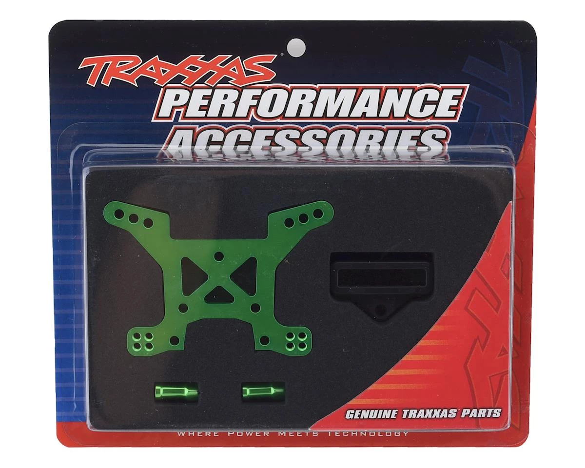 This is an optional Traxxas Aluminum Rustler 4X4 Front Shock Tower, intended for use with the Rustler 4X4 and 4X4 VXL models. These 7075-T6 aluminum shock towers come in fiery-red, bright-blue or green-anodized to add eye catching style to your set-up. This set includes one front shock tower, one body mount bracket and hardware.