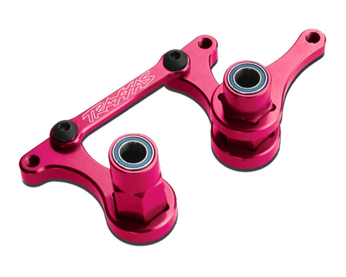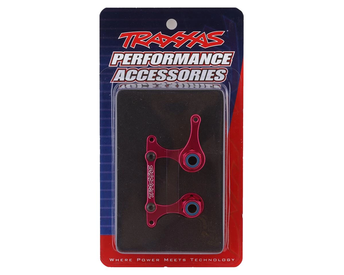 The Traxxas Aluminum Steering Bellcrank Set with Bearings is a machined aluminum upgrade for the Rustler, Bandit, Nitro Slash, and Slash models. This bellcrank set will enhance steering precision, strength, and looks. These ball bearing equipped bellcranks offer silky smooth operation for reduced friction and long life. The pre-assembled units are easy to install, include detailed installation instructions, and are available in a variety of anodized colors with laser-etched Traxxas logo.