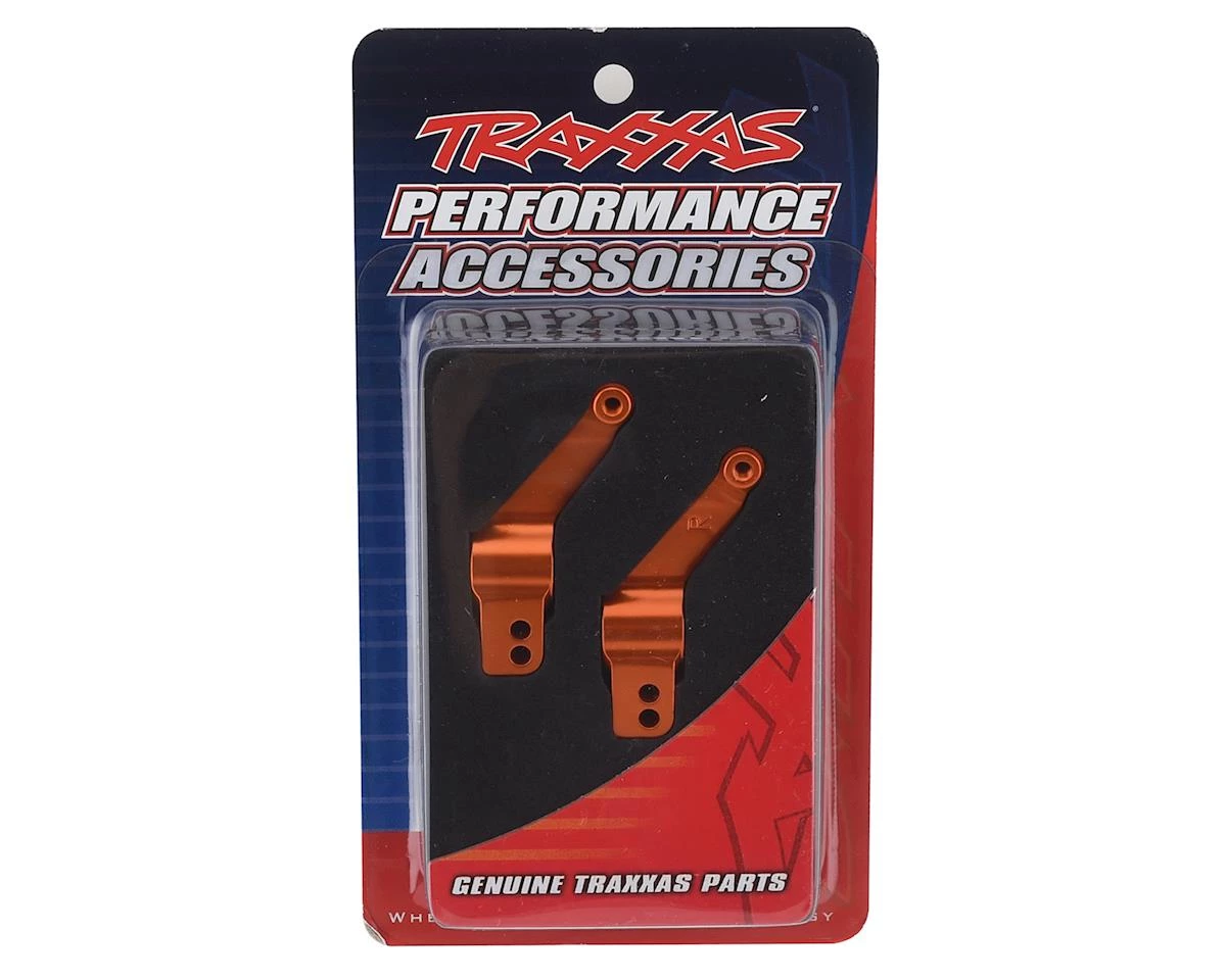 This is a set of two optional Traxxas Rear Stub Axle Carriers, and are intended for use with the Traxxas Slash 4×4, Nitro Rustler, Nitro Stampede, Nitro Sport and others. These will not only add strength to the rear suspension of your Traxxas Truck, these high quality CNC machined 6061-T6 aluminum axle carriers will help to give your ride a “Pro” Truck look.