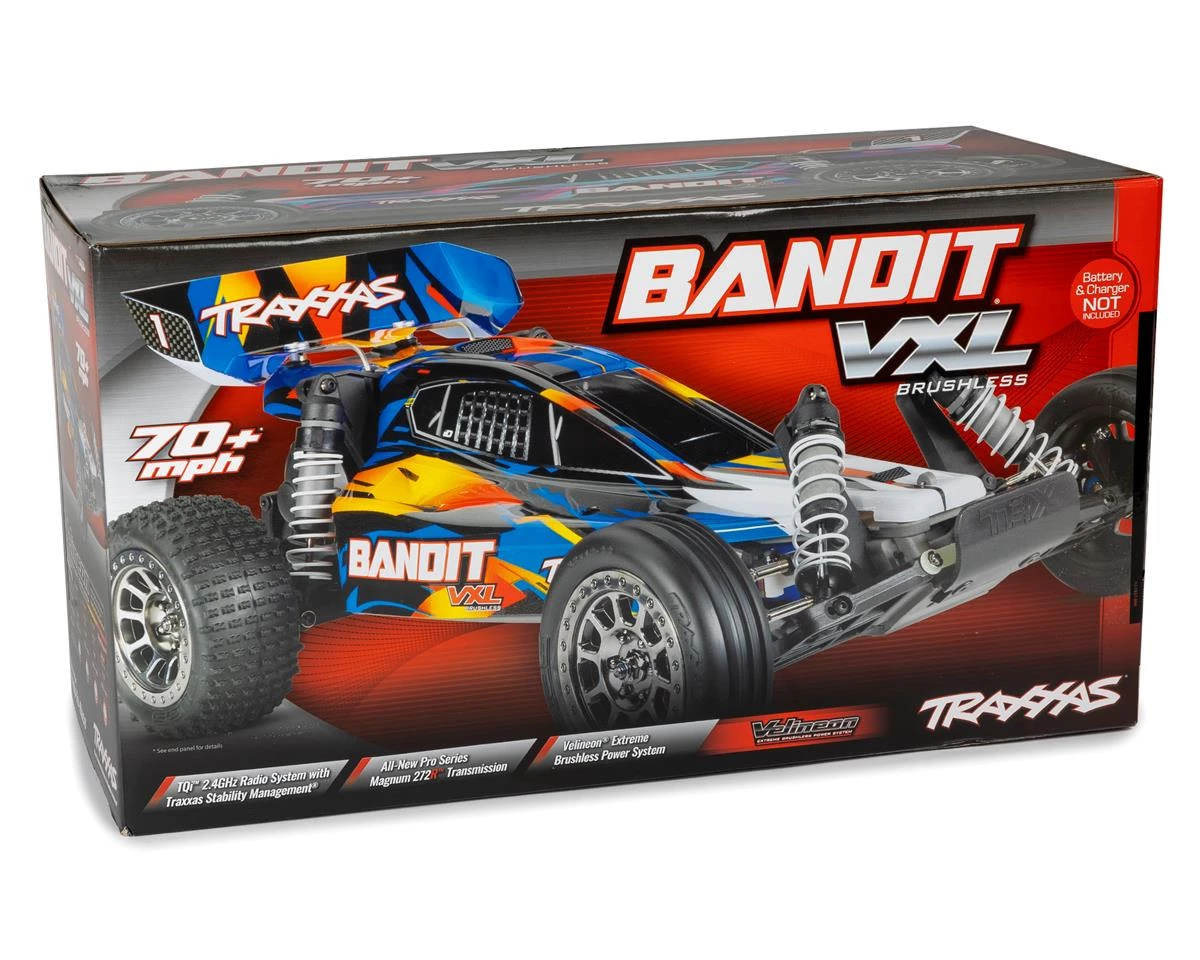 The Traxxas Bandit Bandit VXL Brushless 1/10 RTR 2WD Buggy is a lightweight speed machine for incredible off-road performance. When paired with an optional 3S LiPo and 33/76T gearing (both sold separately), this buggy is capable of reaching over 70mph. With fully waterproof electronics, even the wildest all-weather adventures possible as you shatter speed limits and discover a new world of RC excitement