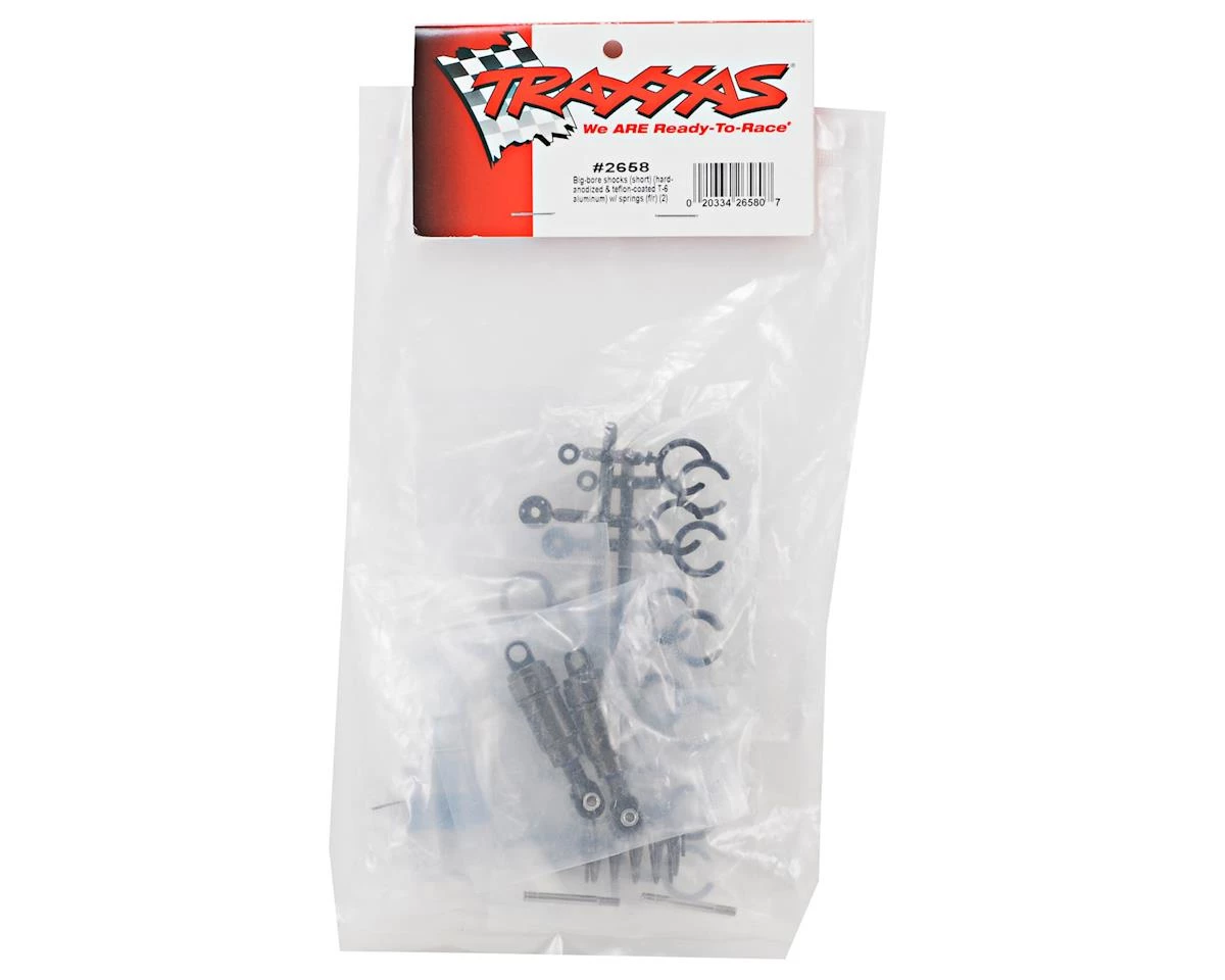 This is an optional Traxxas Big Bore Shock Set, and is intended for use with the Traxxas Nitro 4-Tec. Traxxas Big Bore shocks provide ultimate dampening control. They’re hard-anodized, Teflon-coated and have large cylinders for greater oil capacity. Adjustments are a snap with clip-on spring pre-load spacers and installation time is reduced because the shocks are sold pre-assembled.