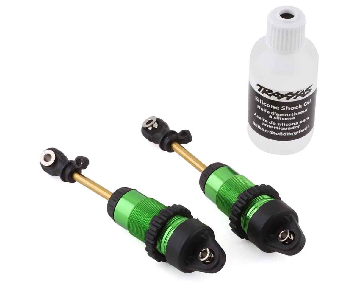 Traxxas Complete GTR Long Shocks feature green anodized bodies with TiN shafts. These shocks are fully assembled and ready for oil, and are compatible with the Hoss, Slash 4X4 and Rustler 4X4 models. Package includes two shocks, and shock oil, but does not include shock springs.
