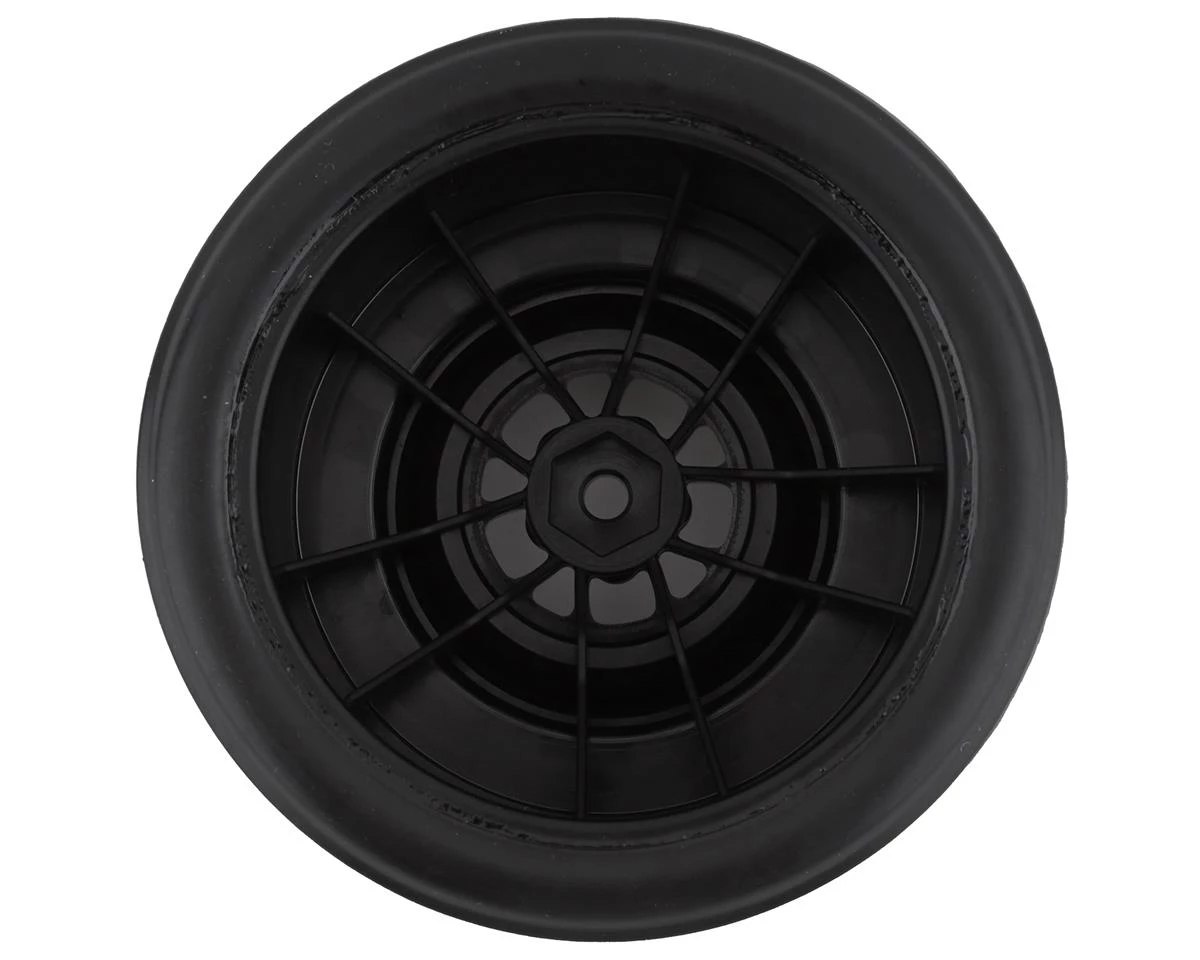Traxxas Drag Slash Rear Pre-Mounted Tires with Weld Wheels and 12mm Hex. These ultra-wide Mickey Thompson ET Drag Slicks feature an innovative carcass design for massive traction off the line and down the track. The tires are mounted to the optional gloss black, licensed Weld rear wheels and are intended for the Traxxas Drag Slash. Package includes two pre-mounted tires.