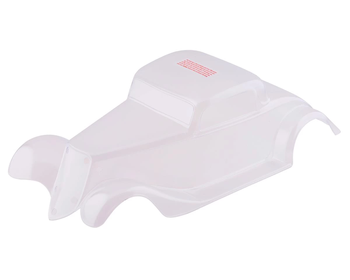 Traxxas Factory Five ’33 Hot Rod Coupe Body. This optional clear body is intended for the Traxxas Factory Five ’33 Hot Rod. The body is pre-cut and includes the molded plastic components needed to complete the body. Package includes one body shell.