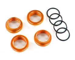 Traxxas GT-Maxx Aluminum Spring Retainers are a machined aluminum upgrade for the Traxxas Maxx monster truck. Machined aluminum construction offers increased strength, and the spring retainers are available in a variety of colors, so you can add a custom touch to your rig. Package includes four orange spring retainers and four o-rings.