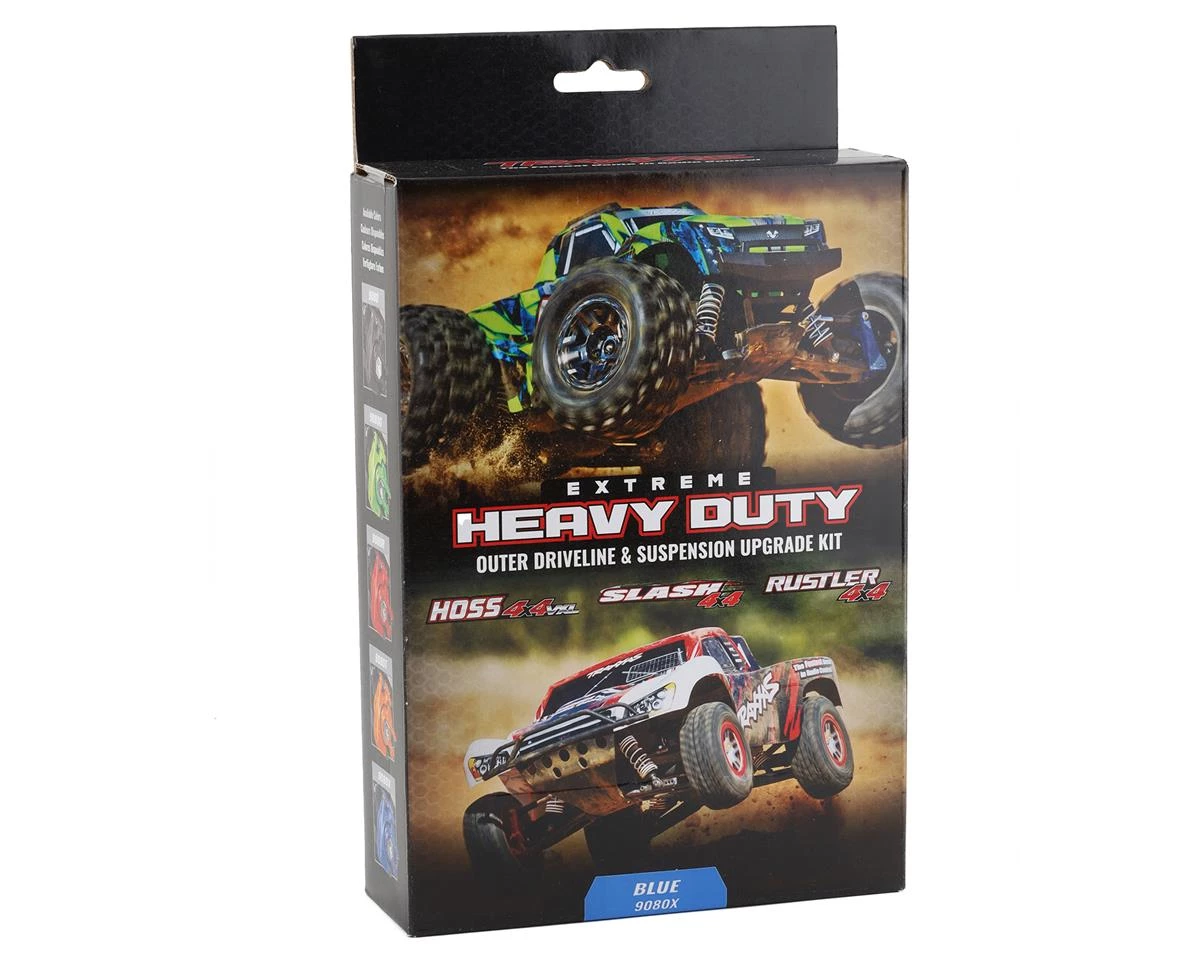 The Traxxas Hoss/Rustler/Slash 4×4 Extreme Heavy Duty Suspension Upgrade Kit has been designed to turn your ride into the ultimate bashing machine. This optional suspension upgrade kit is intended for the Traxxas Hoss 4×4, Rustler 4×4 and Slash 4×4. The kit uses fully updated suspension components, as well as Maxx Duty driveshafts with 6mm stub axles and steel wheel hexes.