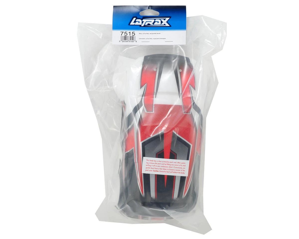 This is a replacement red LaTrax 1/18 Rally Body. This tough, rally-inspired body design is prepainted, precut and features cutting edge graphics, with detailed window and grill decals to finish it off.
