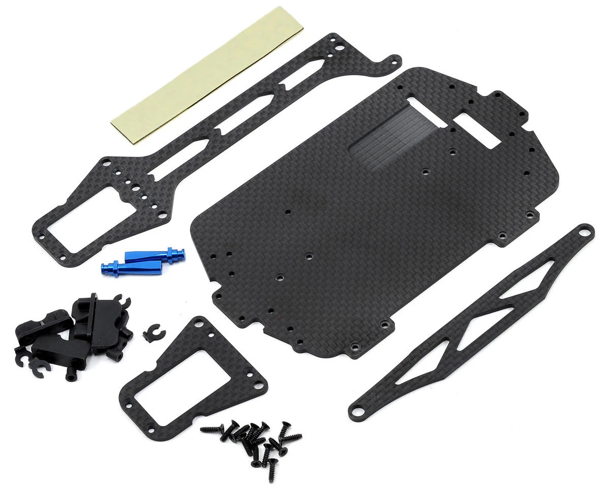 This is an optional LaTrax Carbon Fiber Conversion Kit, intended for use with the LaTrax 1/18 Rally Car. This kit includes the carbon fiber chassis, upper chassis, battery hold down, adhesive foam tape and hardware.