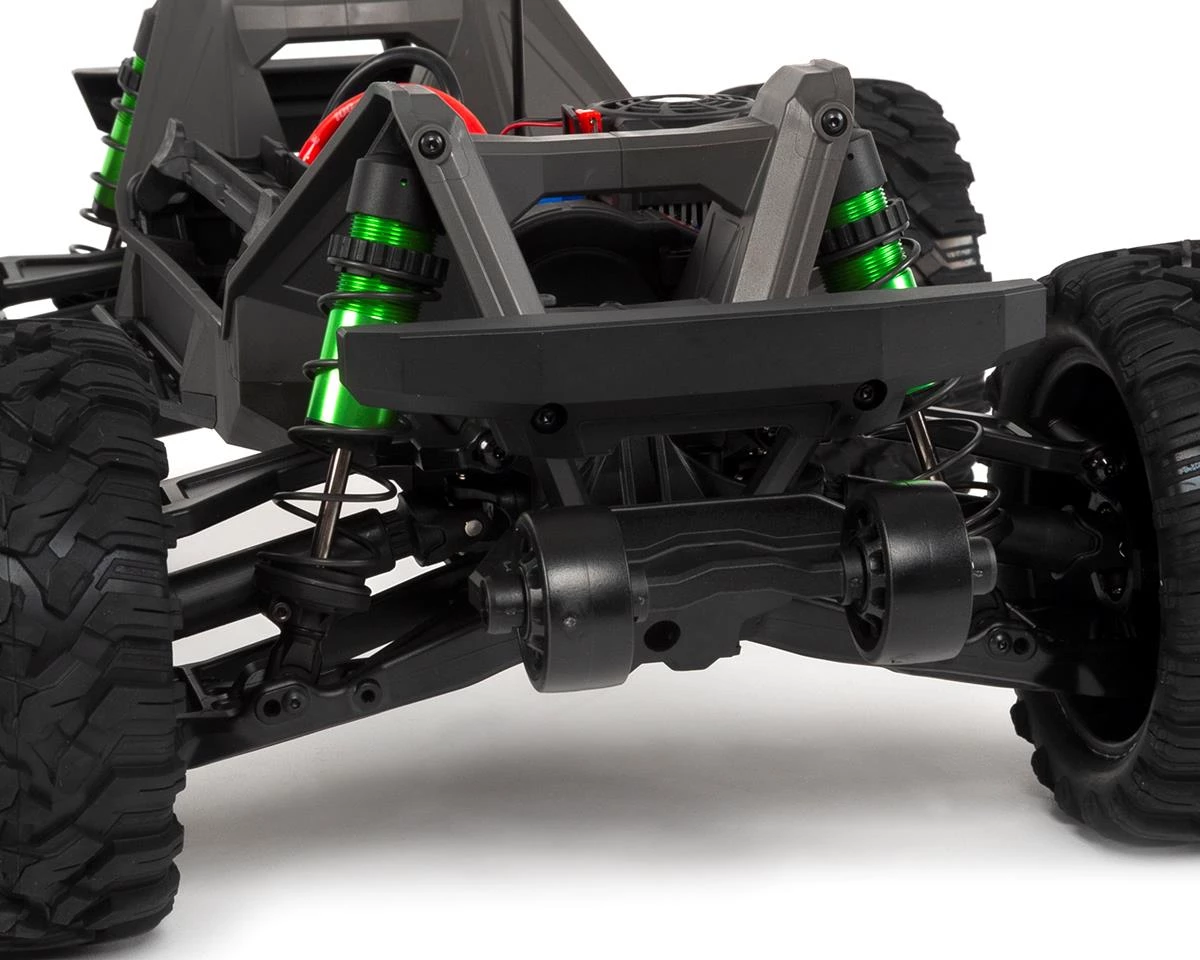 Traxxas Velineon brushless power hits hard with massive 4s punch and effortless wheelies on demand. Maxx feels like an unstoppable force of nature as top speeds reach an awe-inspiring 60+ mph.** Advanced 32-bit microprocessor-control constantly monitors the output for efficient, long-running performance. The high-output 540XL motor features a beefy, 5mm shaft, aluminum heat sink, and a powerful fan. Of course it’s all fully protected with Traxxas’ innovative waterproofing.