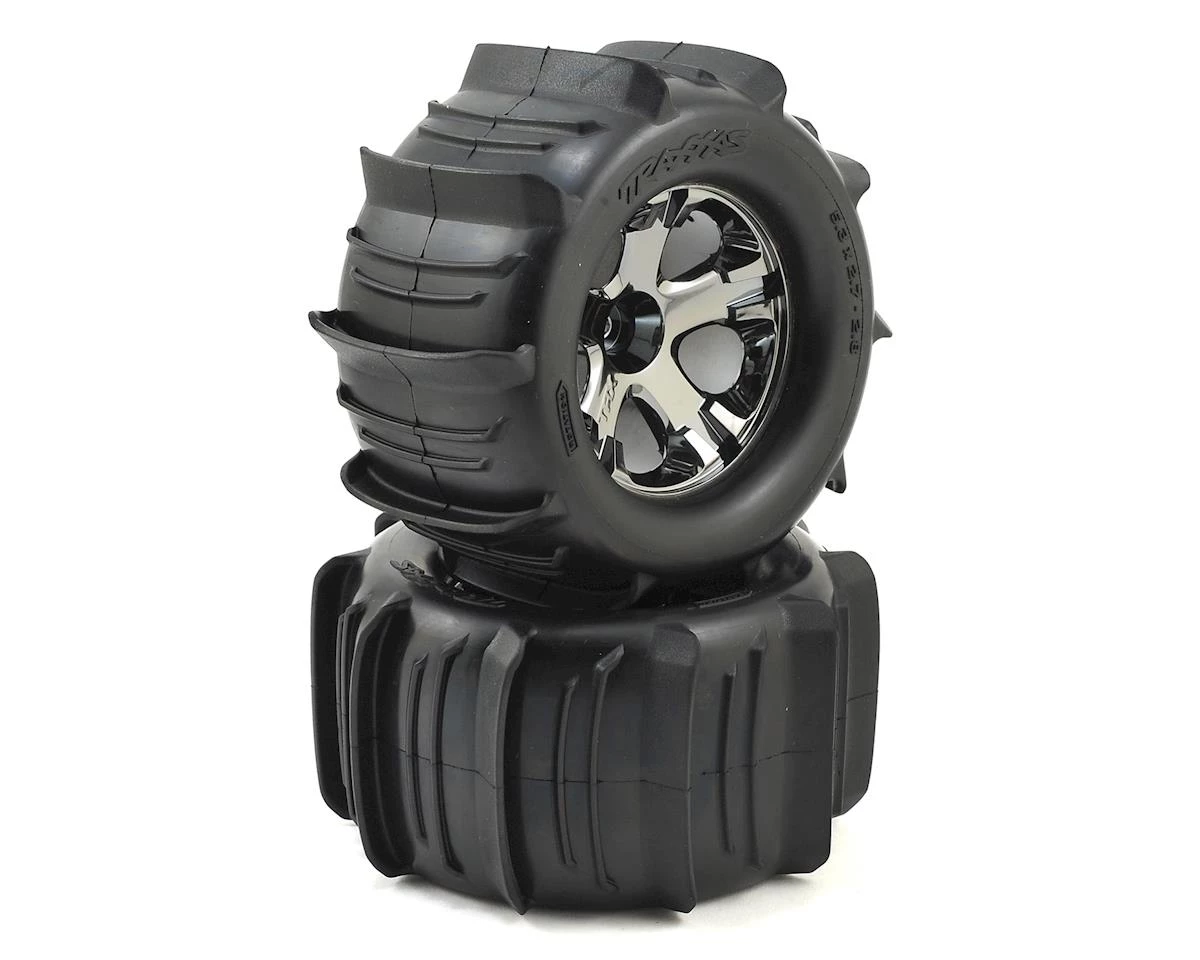 Traxxas Paddle Tires let you tear up sand, snow – and even water! These 2.8″ size paddles are pre-mounted on All-Star Nitro Front Wheels that will fit the Nitro Stampede, and will allow you to explore a whole new dimension of traction. Package includes two pre-mounted tires.