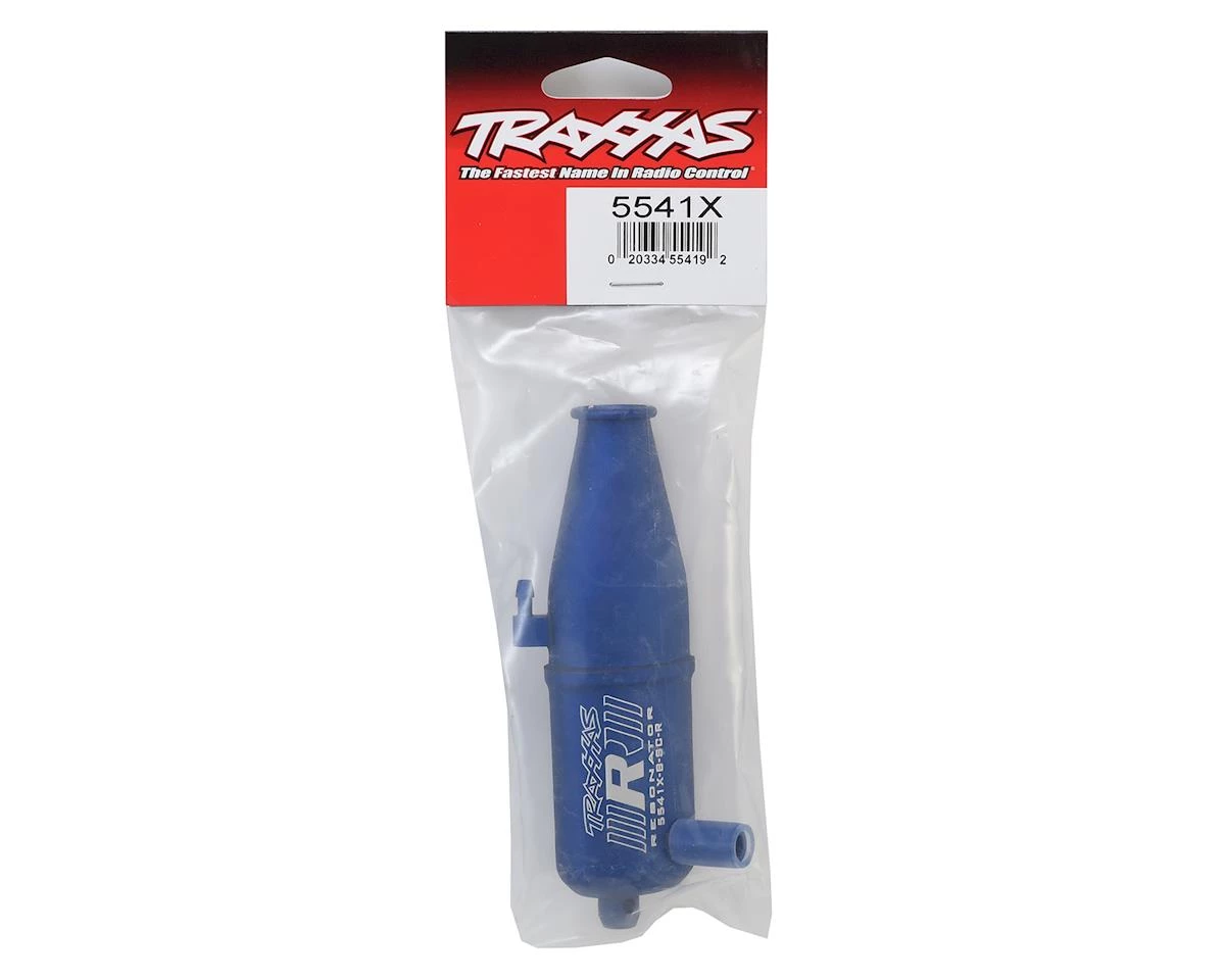 This is an optional Traxxas Blue Resonator Tuned Pipe. This Resonator tuned pipe is R.O.A.R. legal, features a single chamber, and is made from blue-anodized aluminum. Fits Jato, Nitro Rustler and Nitro 4-Tec, equipped with Traxxas Racing Engines.