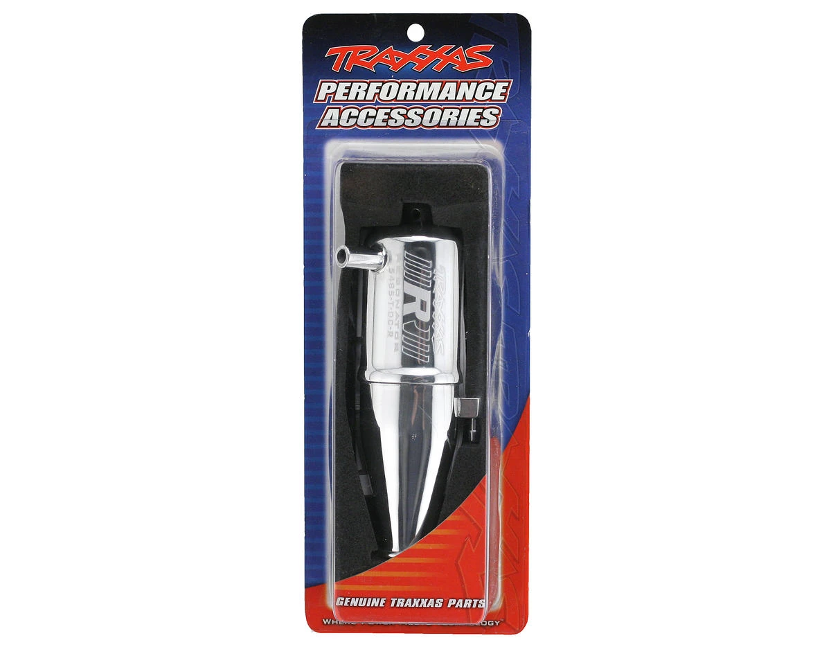 This is an optional Traxxas “High RPM” Resonator Tuned Pipe. Traxxas Resonator aluminum tuned pipes are precision-engineered on the dyno to increase the power output of TRX Racing Engines. The Traxxas engineering team knows TRX Racing Engines better than anyone, so Resonator pipes deliver proven results that drivers can see, hear, and feel every time they pull the trigger. Resonator pipes feature R.O.A.R. legal stingers and come in single and dual-chamber versions. It’s smooth power delivery is perfect for the race track. All Resonator pipes are fully polished to a beautiful mirror-chrome finish with a laser etched logo. Mounting hardware is included.