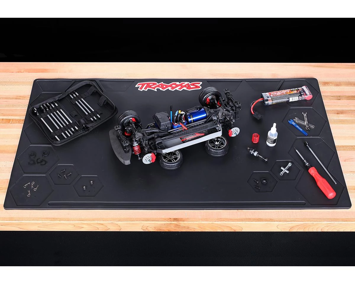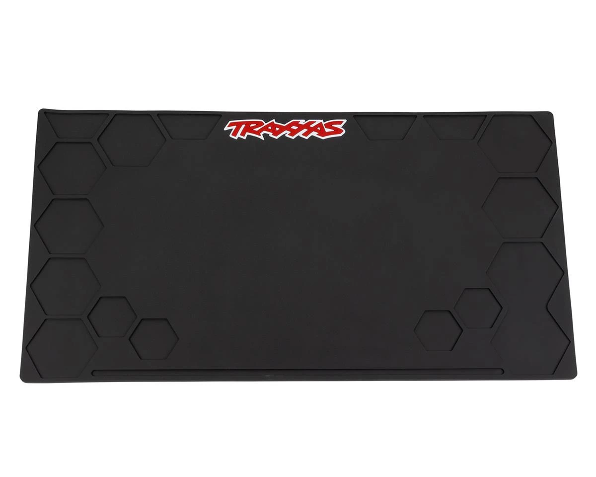 The Traxxas Rubber Pit Mat is perfect for any RC workstation. Featuring a chemical resistant thick rubber this pit mat will help protect the surface underneath from any damage. Built in recessed compartments will help keep screws and tools from rolling away. Package includes one pit mat.