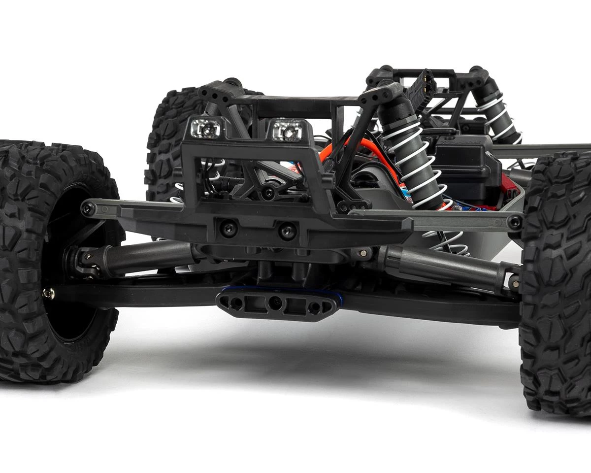 The Traxxas Rustler 4X4 1/10 RTR Stadium Truck with LED Light Set infuses the speed and agility of the Rustler with 4-wheel drive, increased durability and insane looks. At first glance, this Rustler 4X4 features a ProGraphix painted body, front and rear LED lights, roof skid plate, clipless body mount and factory applied decals. The modular chassis sits low to the ground with a wide track width for extreme stability. Powering the durable 4WD drive train is the XL-5 ESC and a 12T Titan 550 brushed motor. Waterproof electronics keep the fun going through wet weather conditions and LED lighting extends your driving fun after dark. Rustler 4X4 destroys convention to become the new standard for 4X4 stadium trucks!