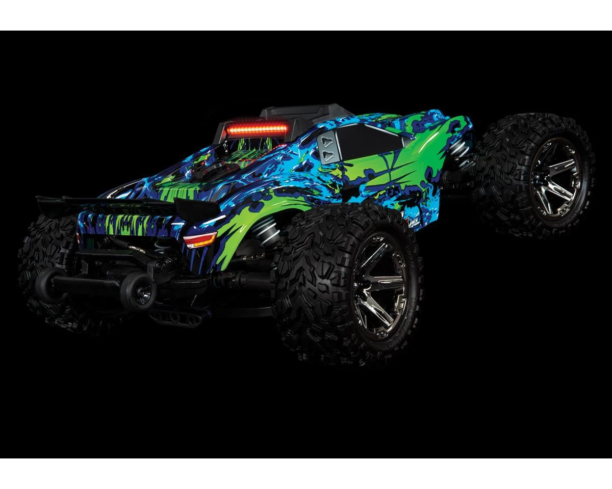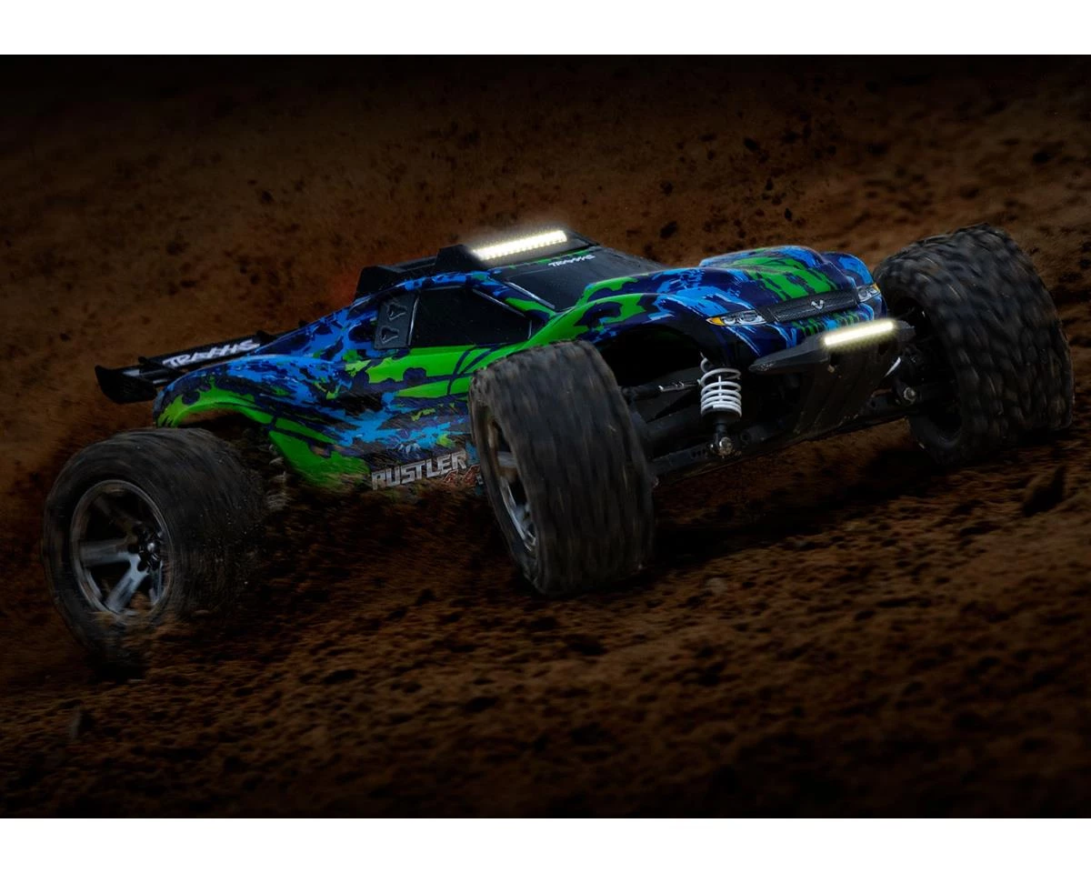 The Traxxas Rustler 4×4 LED Light Set is an optional high-output off road LED light kit with a redesigned front bumper and roof skid. These pieces are made from a super tough composite material, and feature two forward facing bright-white LED light bars along with one rear light bar in red. The system is regulated by a chassis-mounted power supply for reliable lighting on all battery voltages. The Rustler 4X4 LED light kit keeps the fun going past sunset to add a new dimension to the Rustler 4X4 experience.