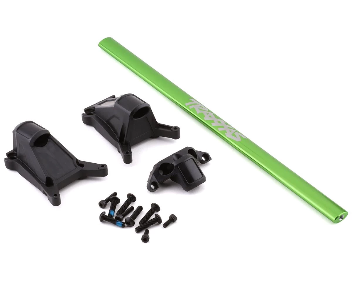 This is an optional Traxxas Rustler 4×4 and Slash 4×4 LCG Chassis Green Brace Kit. This heavy-duty chassis brace fits Slash 4X4 models equipped with the low-CG chassis and all Rustler 4X4 models. Made from thick extruded aluminum, the oval-shaped brace increases torsional rigidity and dramatically strengthens the chassis to reduce flex. Brilliantly anodized in high-impact colors, the HD chassis brace provides structural reinforcement for high loads and hard landings. Whether you’re sending it at the skate park, or launching from a ramp, the heavy-duty chassis brace is built for extreme punishment.