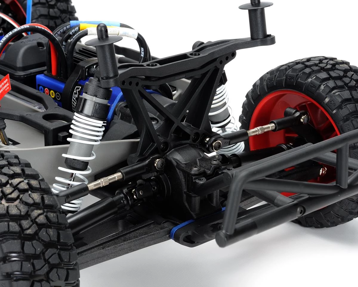 Traxxas Stability ManagementTM (TSM) allows you to experience your Slash’s extreme power, speed, and acceleration by making it much easier to control on slippery surfaces such as loose dirt, smooth concrete, and even ice and snow. Go ahead, punch it off the line!
