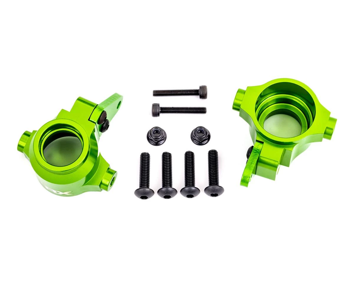 Traxxas Sledge Aluminum Steering Blocks Left and Right. This is an optional accessory intended for the Traxxas Sledge. Constructed from durable 6061-T6 aluminum these offer both style and strength for your Traxxas Sledge. Package includes one left aluminum steering block, one right aluminum steering block, two aluminum steering block arms and mounting hardware.