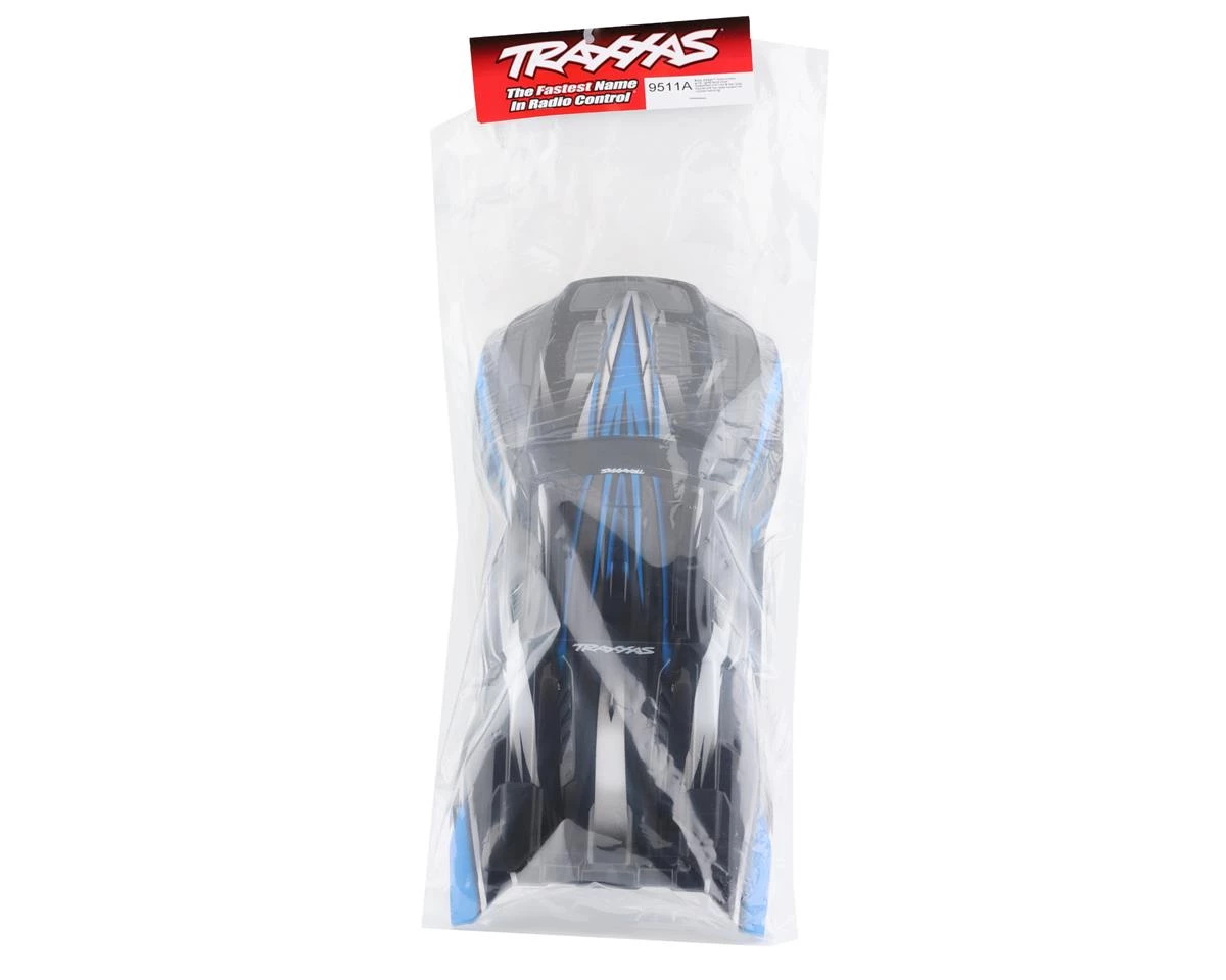 Traxxas Sledge Body pre-painted in Blue. This is a replacement body intended for the Traxxas Sledge. Package includes one blue painted body with roof skids pre-installed.