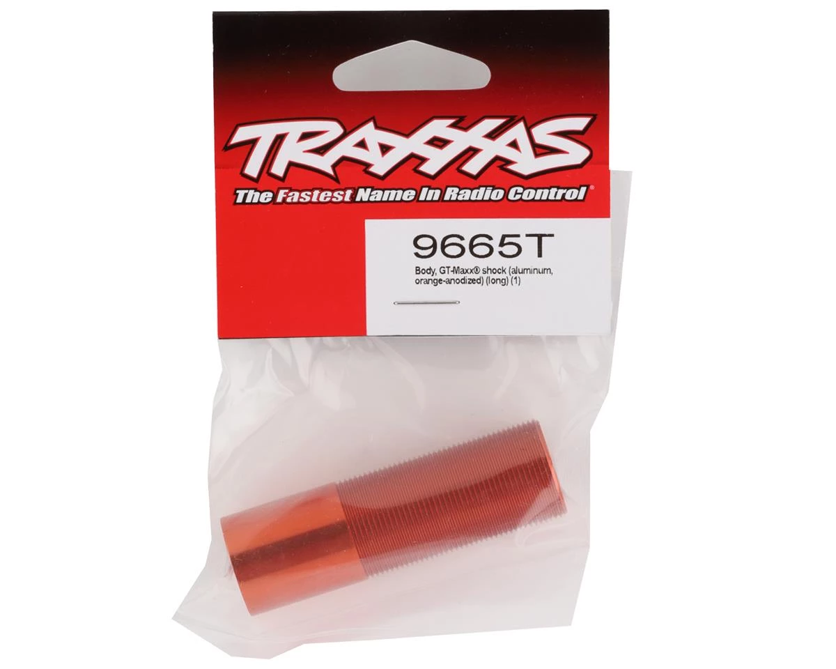 Traxxas Sledge GT-Maxx Aluminum Long Shock Body. This is an optional shock body for the rear of the Traxxas Sledge and are compatible with the 80mm shock shafts. Package includes one orange aluminum long shock body.