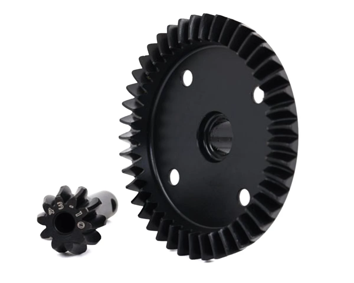 Traxxas Sledge Machined Ring Gear with Pinion. These are a replacement machined ring and pinion intended for the Traxxas Sledge and fit both the front and rear differentials. Package includes one 43 tooth machined ring gear and one 10 tooth machined pinion gear.