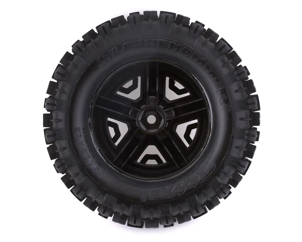 Traxxas Sledgehammer 2.8″ Pre-Mounted Tires. These tires are TSM rated and intended for the Traxxas Hoss 4×4. Package includes two pre-mounted tires.