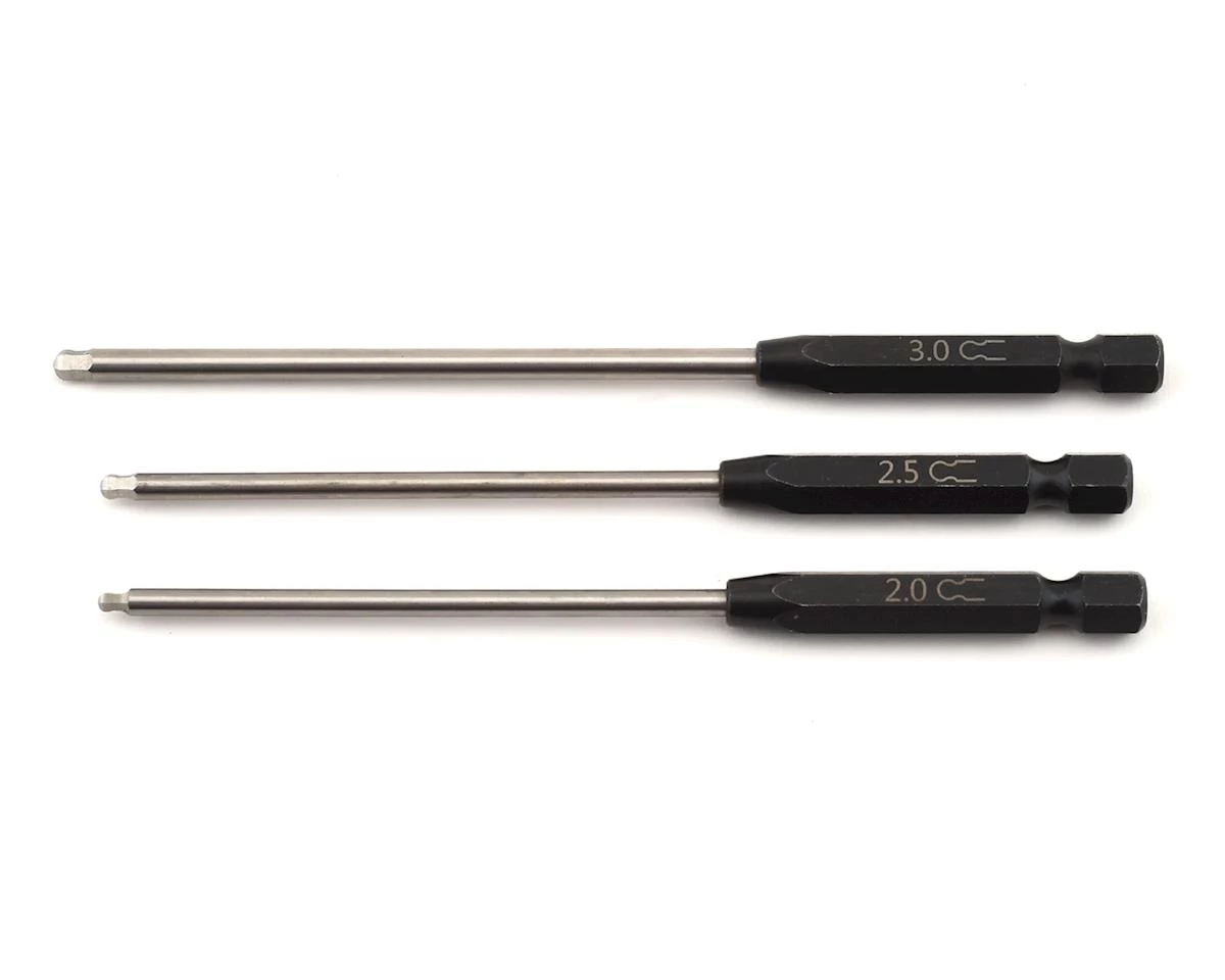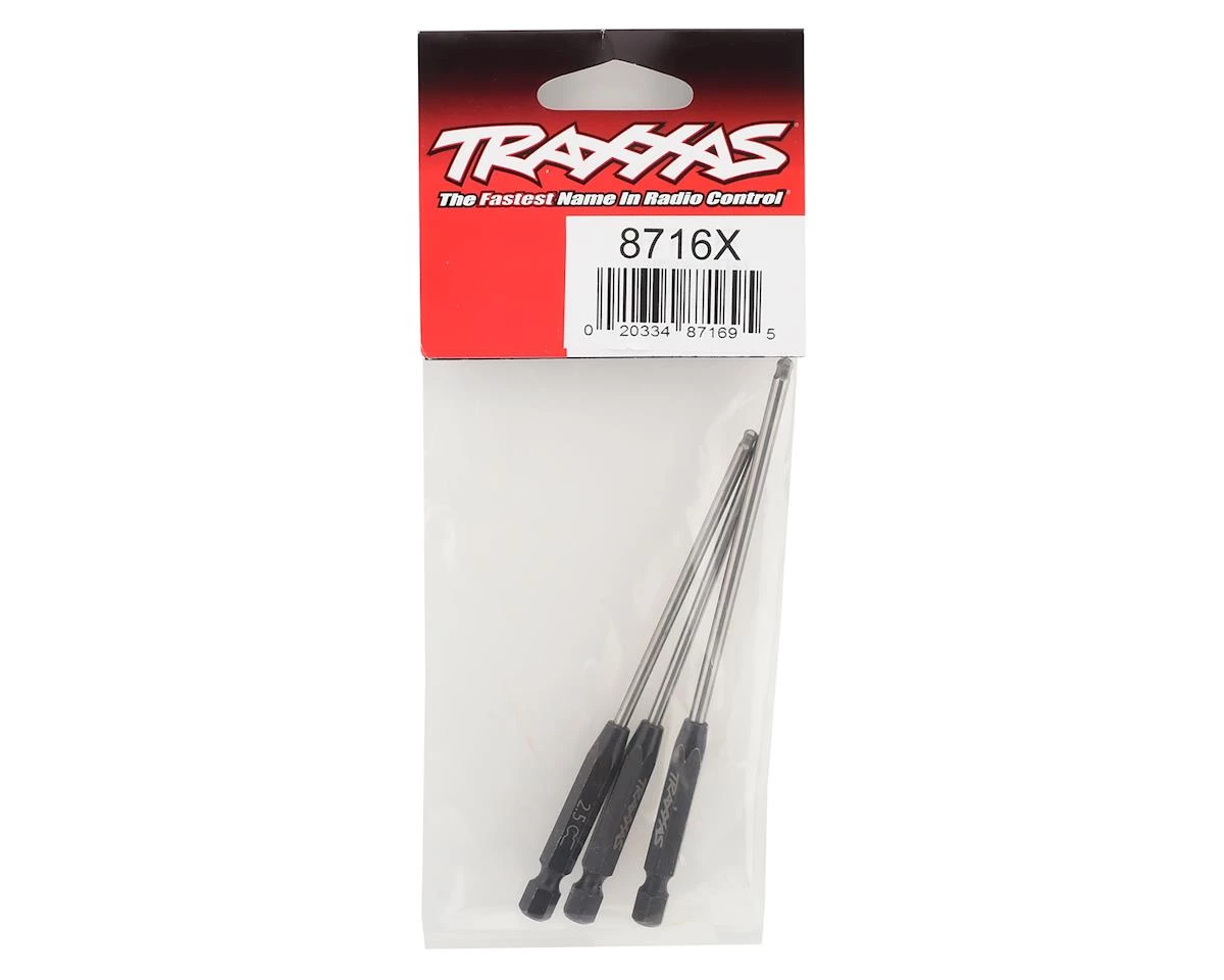 This is a set of Traxxas Speed Bits, Ball End 1/4″ Drive Hex Driver Set. This set includes 2.0mm, 2.5mm and 3.0mm ball tip hex bits.