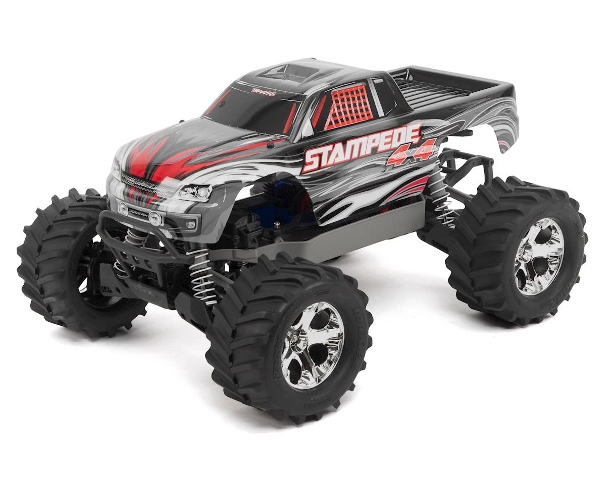 This is the Traxxas Stampede 4X4 LCG RTR 1/10 Scale Monster Truck, with an included TQ 2.4GHz Radio System, 7-Cell 3000mAh NiMH Battery Pack, 4 AMP Peak Detecting DC Charger and silver body. Now featured with this kit are the updated Traxxas iD connectors now included as standard equipment.