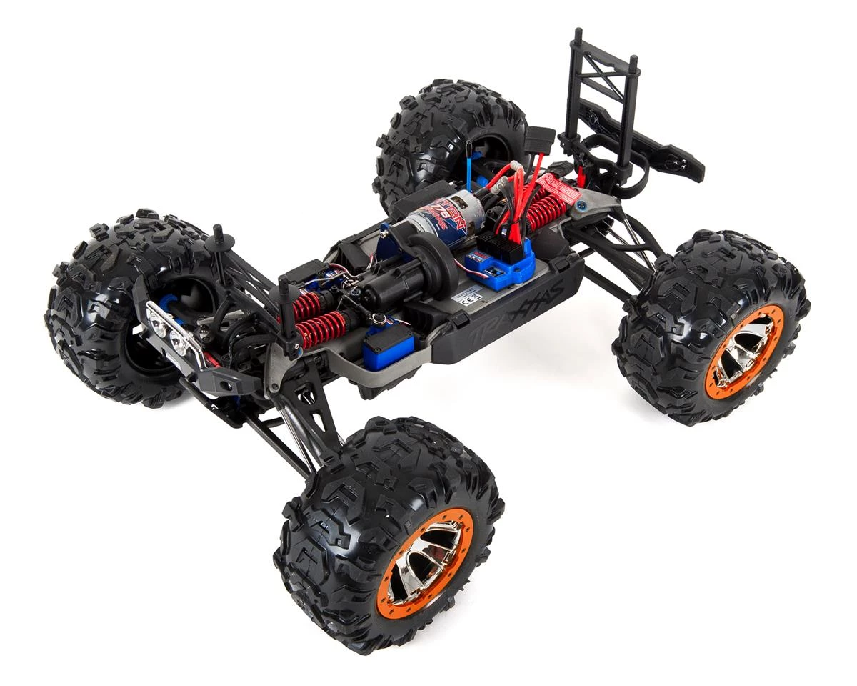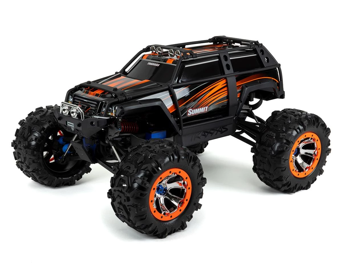 Summit gets its spin from the largest motor of any electric monster truck, the Titan® 775. This massive mill is equipped with a fan-cooled armature for nonstop off-road adventure, and an extra wrap of steel around the can for maximum magnetic field strength—that means more torque to tame the trail and conquer any climb. Designed by Traxxas, the EVX-2 features three drive profiles, thermal shutdown protection, low-voltage detection for compatibility with LiPo battery packs, and patented Traxxas high-current battery connectors. Throttle control comes from an EVX-2™ electronic speed control, a heavy-duty powerhouse that can handle up to 16.8 volts to give Summit extreme trail-conquering torque. And if that trail is wet, muddy or even covered in snow, it’s no problem. Waterproof electronics let Summit operate worry-free in conditions that sideline other monster trucks.