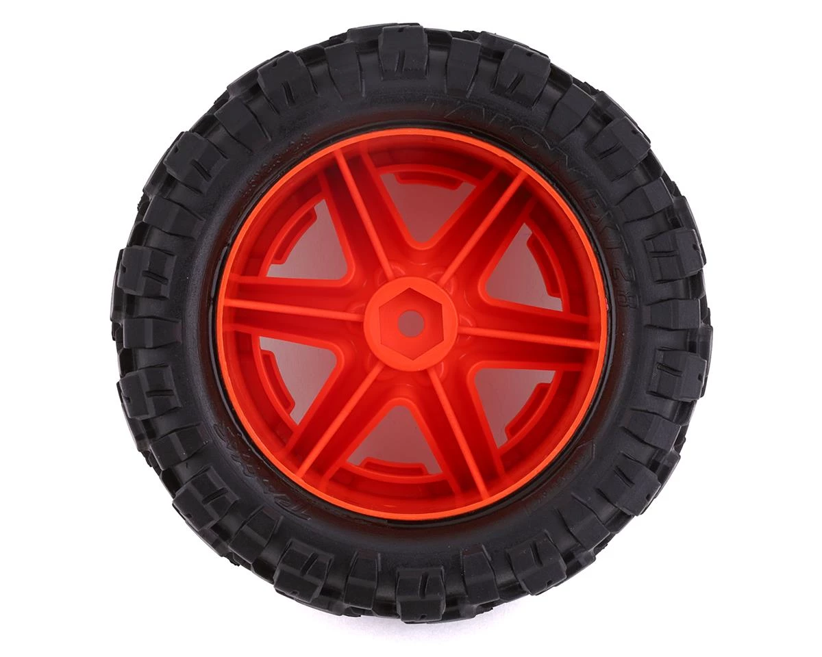 Traxxas Talon EXT 2.8″ Pre-Mounted Rear Tires. These tires are pre-mounted to orange 2WD electric rear offset RXT wheels. These are optional wheels and tires intended for the Traxxas Rustler 2WD. Package includes two pre-mounted tires.