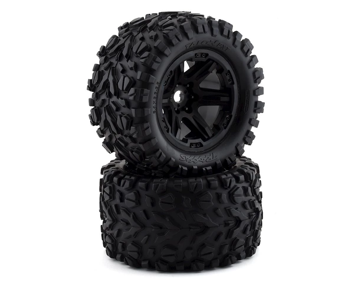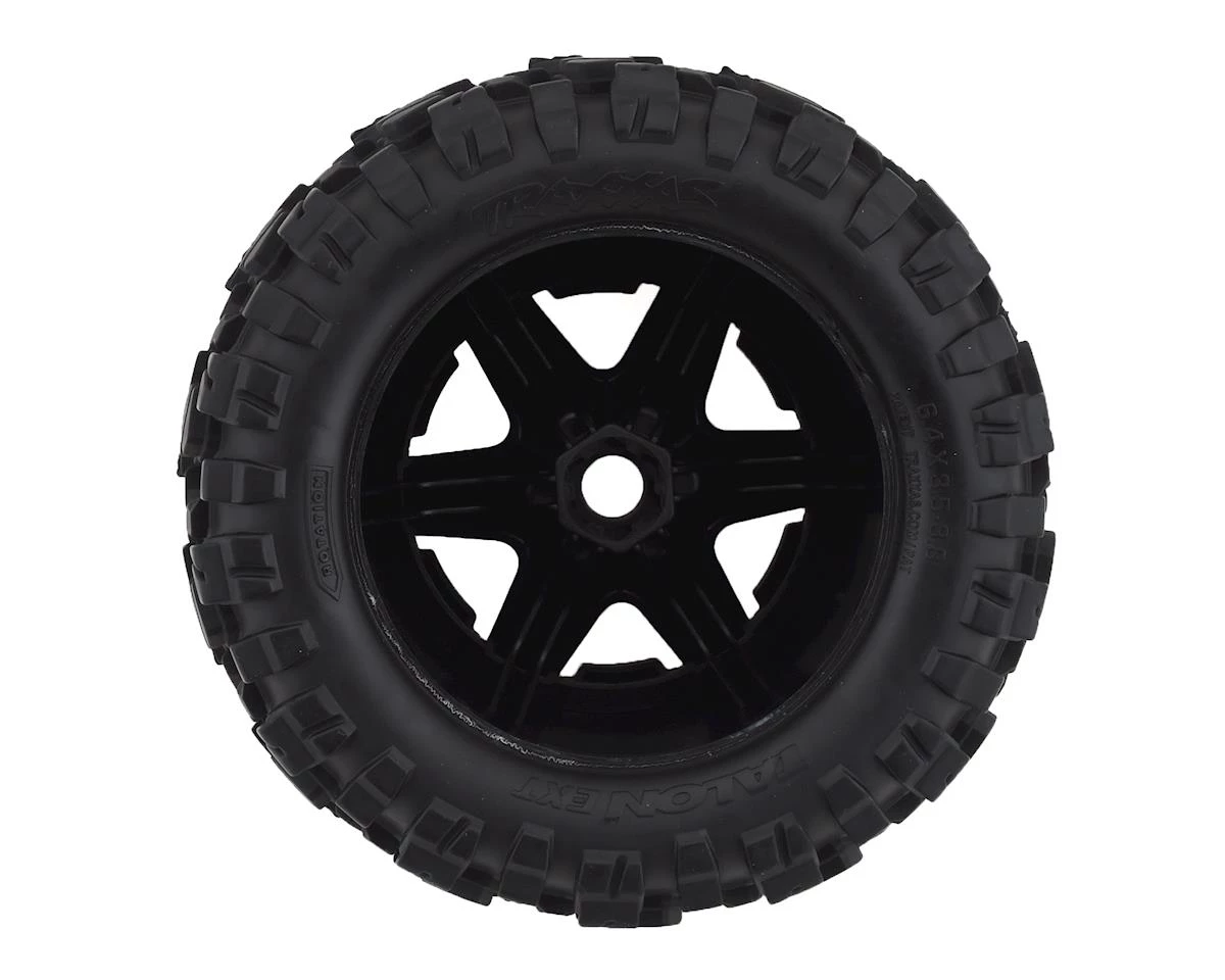 This is a pack of two replacement Traxxas Talon EXT 3.8″ Tires, Pre-Mounted to Black wheels with a splined 17mm hex. These tires have been glued to the wheel and include an inner foam insert. Just install and go! TSM Rated.