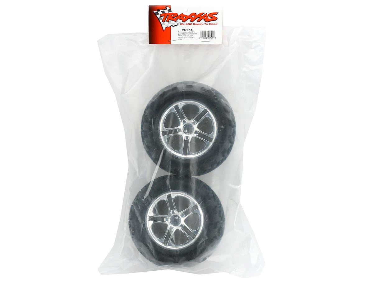 Tires & wheels, assembled, glued (SS (Split Spoke) chrome wheels, Talon tires, foam inserts) (2) (fits Maxx/Revo series)