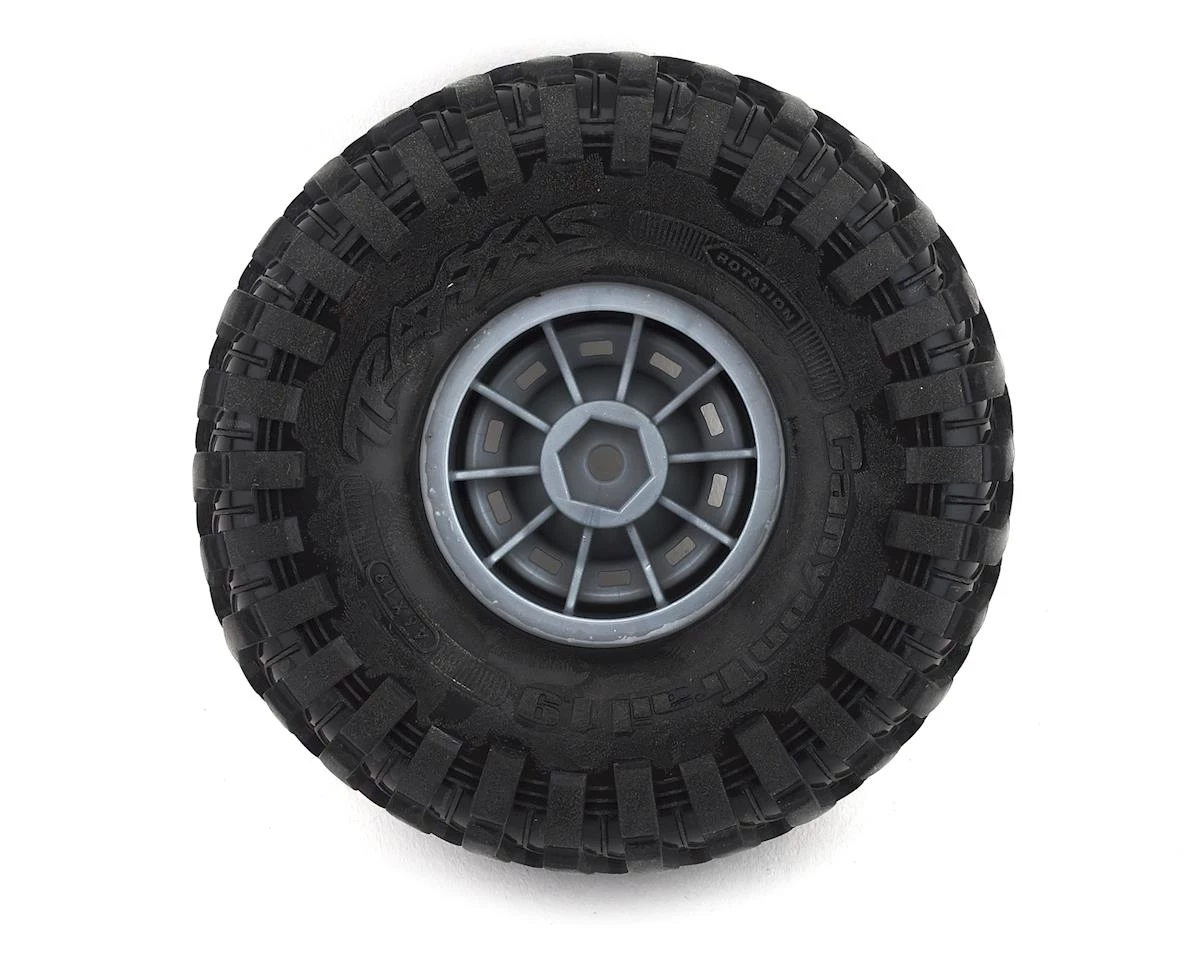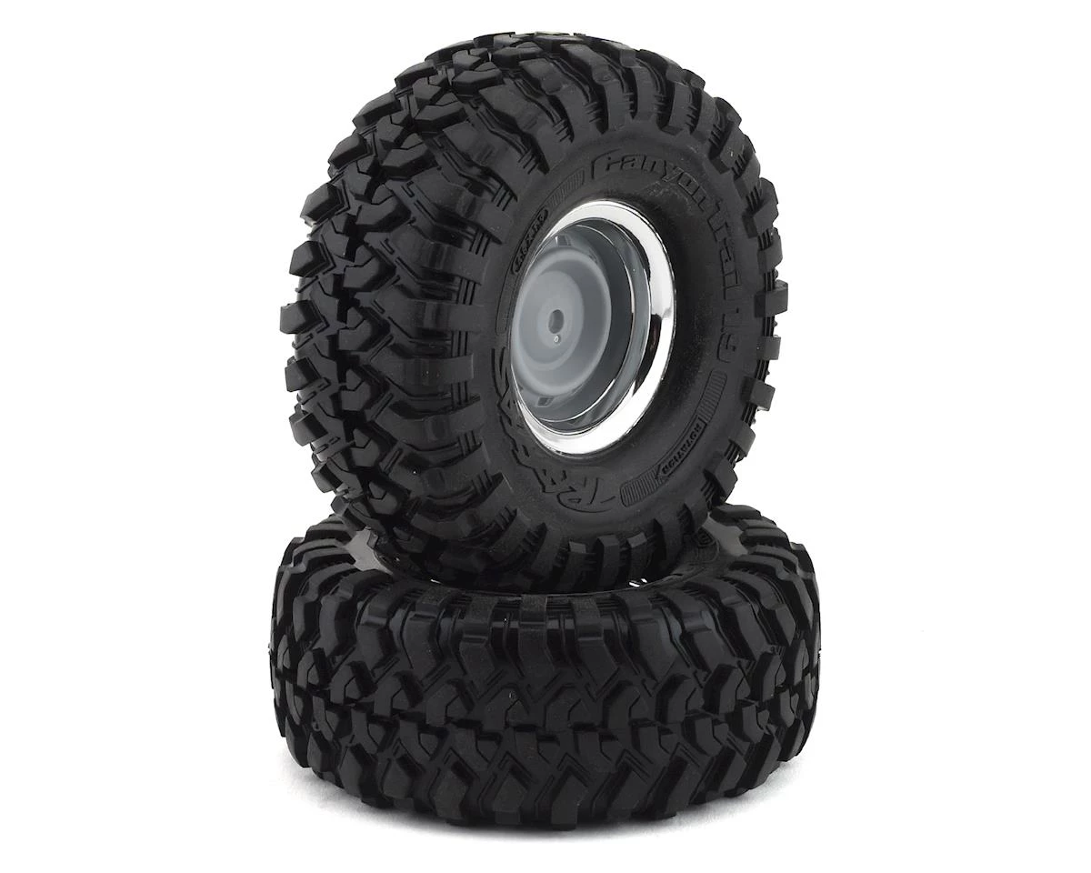 This is a set of Traxxas TRX-4 Blazer Canyon Trail 1.9″ Crawler Tires, Pre-Mounted on grey and chrome colored Blazer wheels with a 12mm hex. These tires are made from a super-soft and grippy S1 compound and fitted with tuned foam inserts while the 12mm hex makes these TrX-4 wheels compatible with a variety of 1.9 class trucks. These are intended for use as an replacement part for the TRX-4 1979 Chevrolet Blazer and require the Traxxas TRX-4 Extended Portal Drive Stub Axle Set.Â