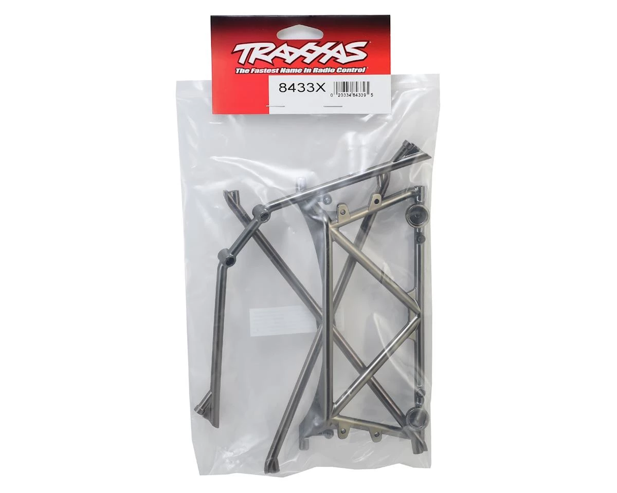 This is the optional Traxxas Tube Chassis Center Support Set in Chrome Plated Satin Black. This set includes the center support, cage top and rear cage support.