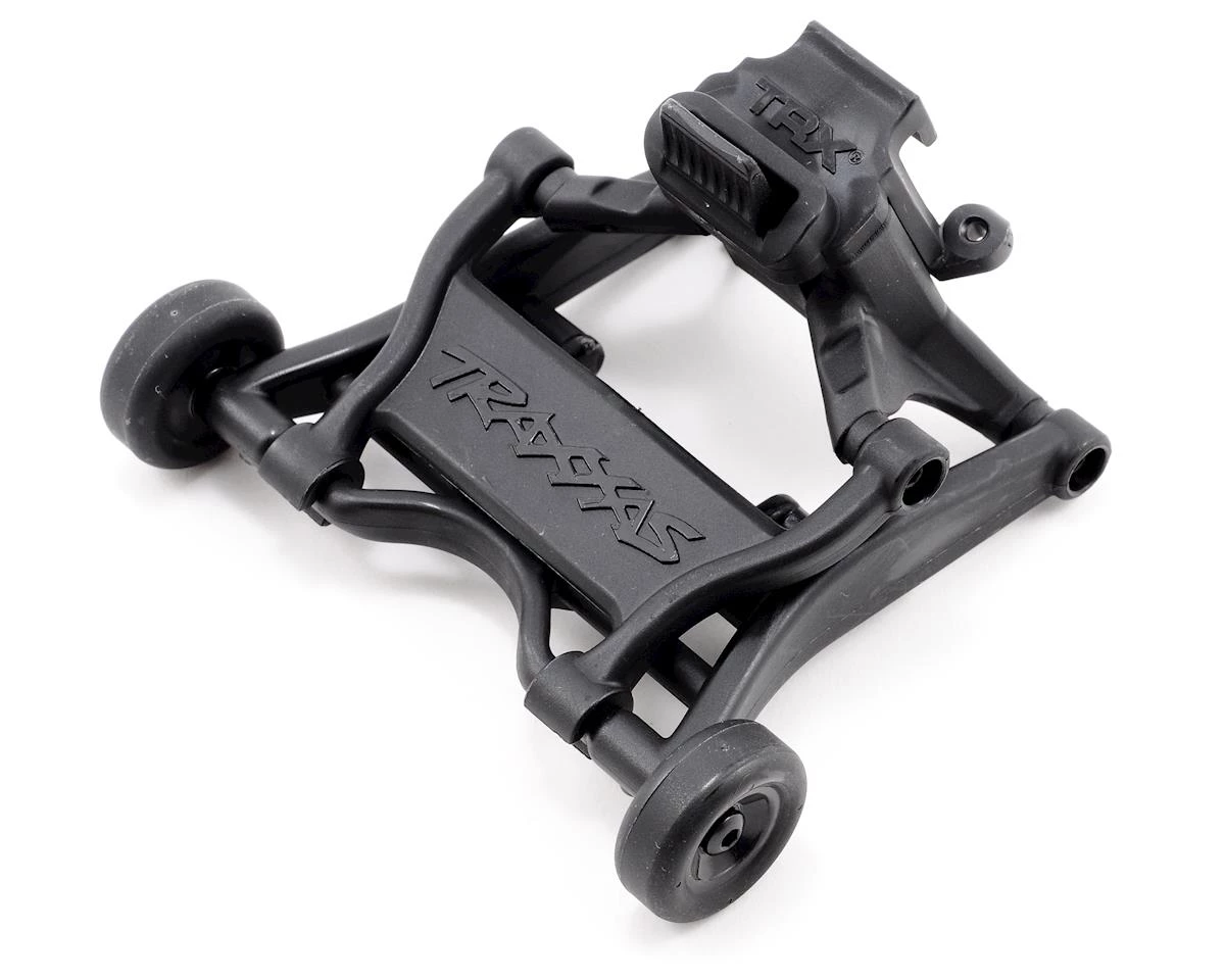 The accessory Revo wheelie bar assembly features a unique quick release design that is compatible with Revo trucks, nitro and electric. The wheelie bar assembly is easy to install for controlled wheelies on demand. Four snap-in adjustment positions allow you to choose how extreme you want your wheelie action to be. When it is time to head off-road, a convenient quick release tab makes removal and installation a snap. The wheelie bar mount is compatible with all factory Revo configurations including sway bars and wing mounts.