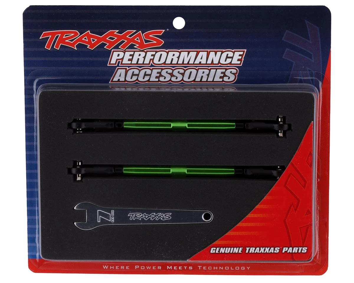 Traxxas WideMaxx Aluminum Toe Link Tubes are an optional upgrade for Traxxas Maxx trucks equipped with the WideMaxx suspension kit (TRA8995) feature a hybrid design that combines steel threaded inserts, inside a 7075-T6 aluminum shaft. This configuration makes these links lighter than the stock steel parts, but stronger than titanium. Package includes two factory assembled links and an aluminum wrench for adjustment.