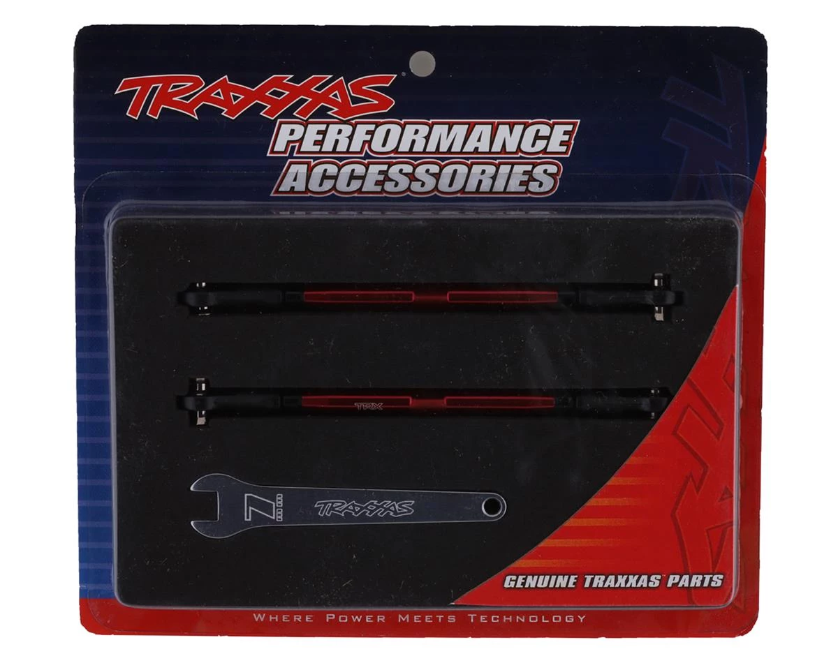 Traxxas WideMaxx Aluminum Toe Link Tubes are an optional upgrade for Traxxas Maxx trucks equipped with the WideMaxx suspension kit (TRA8995) feature a hybrid design that combines steel threaded inserts, inside a 7075-T6 aluminum shaft. This configuration makes these links lighter than the stock steel parts, but stronger than titanium. Package includes two factory assembled links and an aluminum wrench for adjustment. Â