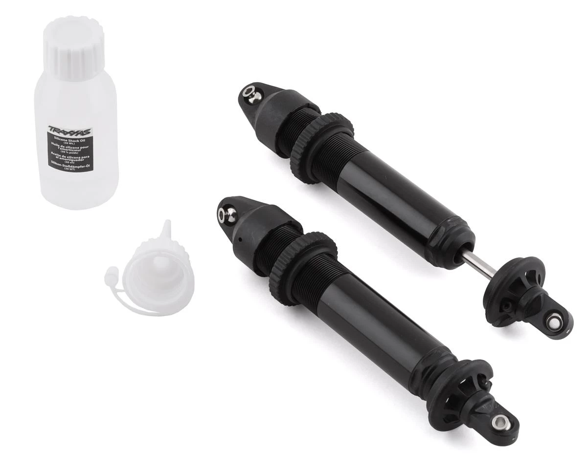 Traxxas X-Maxx GTX Assembled Shocks. These shocks are factory assembled, but are not filled with shock oil and do not include shock springs. Package includes two shocks and a bottle of 30wt Traxxas Shock Oil.