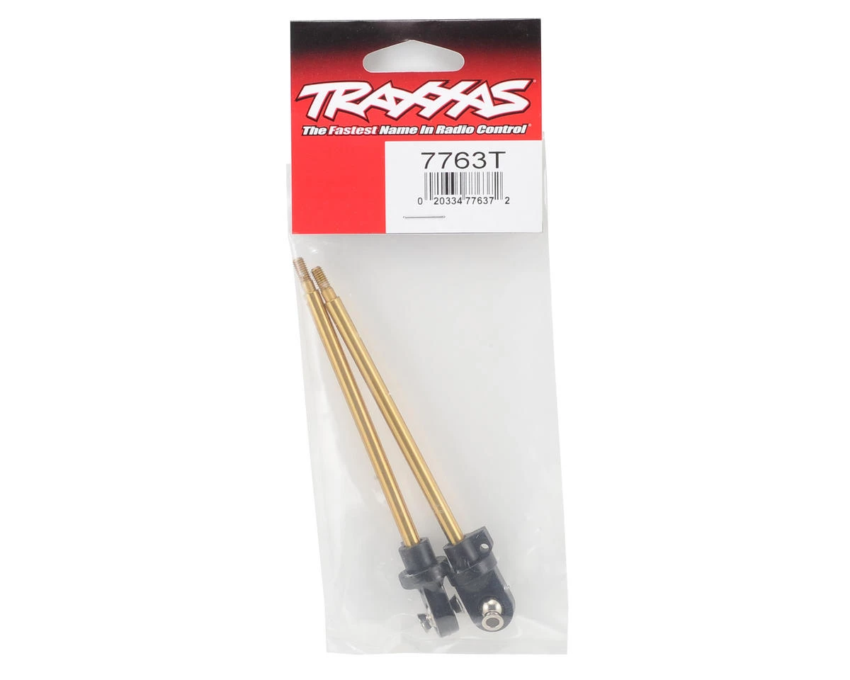 This is a pack of two optional Traxxas GTX TiN-Coated Shock Shafts for the Traxxas X-Maxx Monster Truck. These shock shafts are Titanium-nitride coated to help resist scuffing, increase durability and eliminate “stiction.” Shafts come with assembled ends and steel hollow pillow balls.