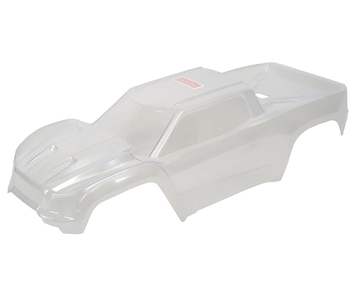 This is a clear Traxxas X-Maxx Monster Truck Body. This replacement body requires polycarbonate paint, but is pre-trimmed and includes window masks and decal sheets.
